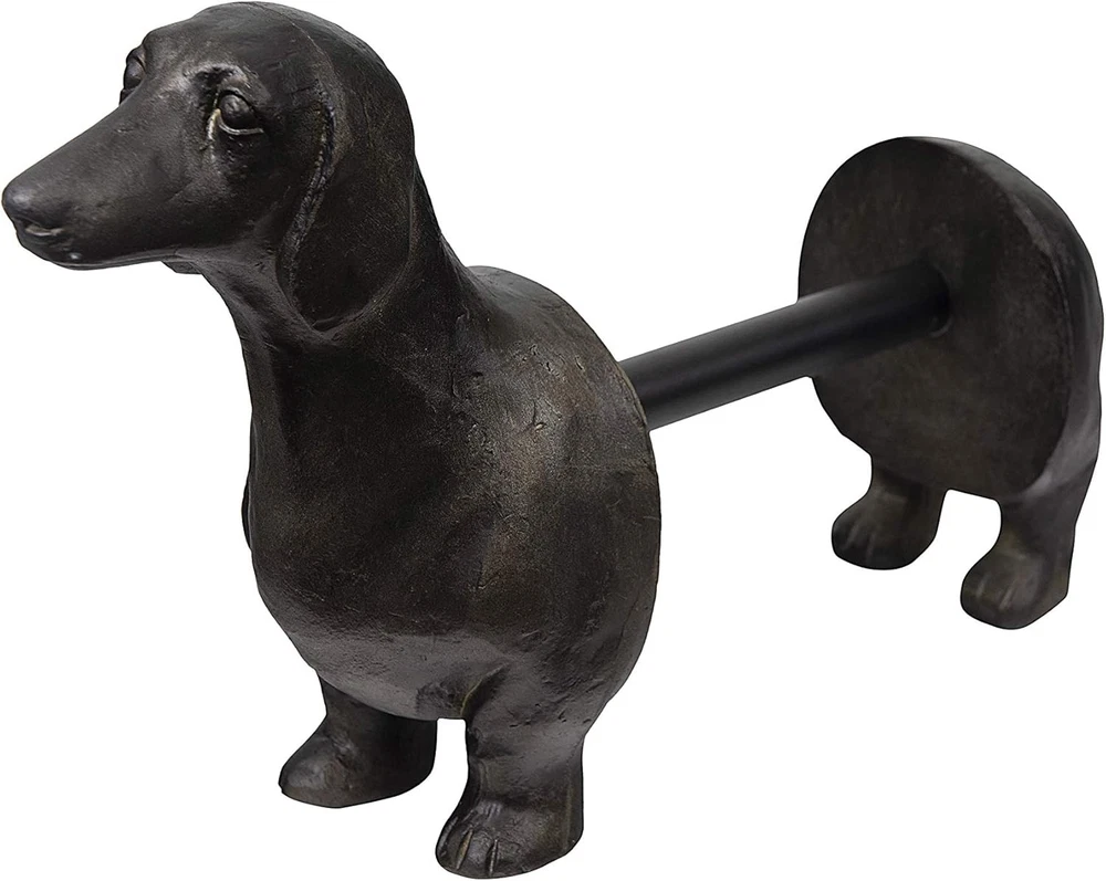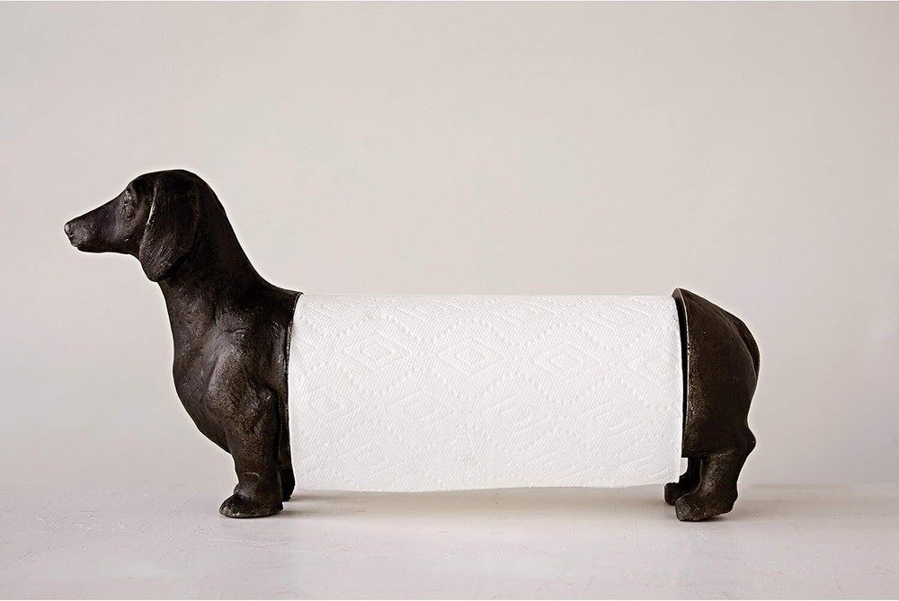 Creative Co-Op Dachshund Dog Paper Towel Holder Entertaining Tools, Bronze Product Details Material: Resin Color: Bronze Brand: Creative Co-Op Mounting Type: Floor Mount Item Weight: 2.81 Pounds Product Dimensions: 16.8"L x 10"W Number of Items: 1 Manufacturer: Creative Co-Op Item Weight: 2.81 pounds Item model number: DA7288 Is Discontinued By Manufacturer: No Dog shaped design makes cleanup fun Freestanding allows you to place it anywhere needed Can also be used to hold rolls of ribbon Wipe clean with Dry cloth 16. 75L x 5W x 10H in. Your children will want to name this precious dog and let him become their friend. When making a mess in your kitchen, It might occur to them more quickly to grab a paper towel from their dog Buddy. Because it is free standing, It is also convenient to move from the counter to the table or wherever it is needed.