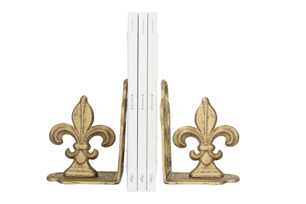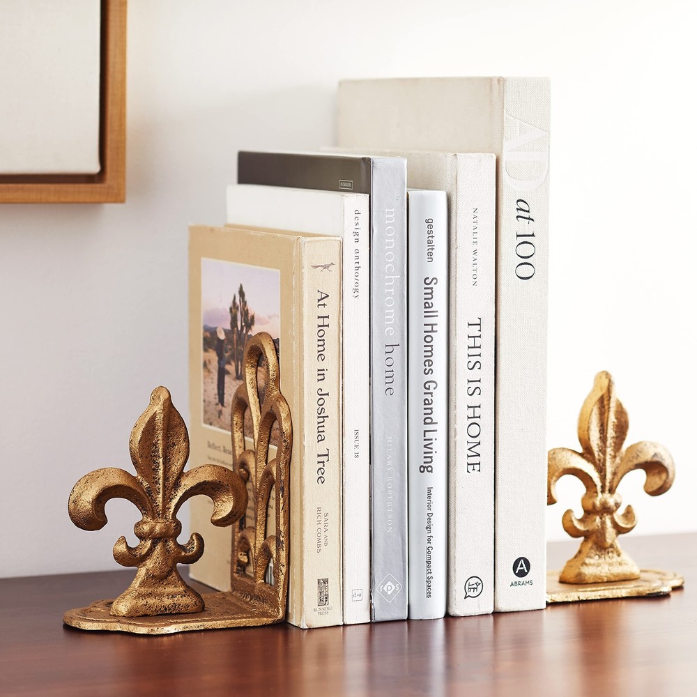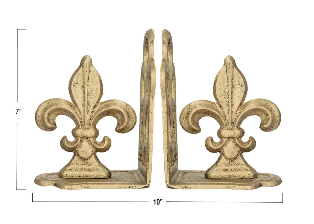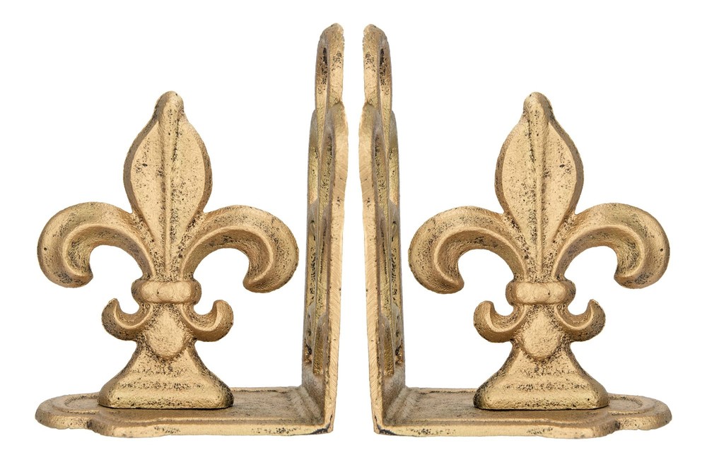 Creative Co-Op Decorative Distressed Metal Fleur de Lis Bookends, Gold, Set of 2 Add some French-inspired elegance and charm to the bookshelf with these distressed gold metal fleur de lis bookends These bookends are suitable for any vintage, classic, or country style of home décor, as they create a refined and romantic look They feature a fleur de lis shape, can be used to group favorite books inside them, or as a decorative accent in any space The bookend measures 5 inches long, 3.75 inches wide, and 7 inches high To clean these bookends, simply wipe them with a dry cloth Hand finished Shipping We offer FREE shipping on all orders! We ship within Three business days of payment, usually sooner. We use a selection of shipping services such as UPS, FedEx, USPS etc. We only ship to the lower 48 states, no APO/FPO addresses or PO Boxes allowed. Local pickups and combined shipping options are not provided at this time. Return You can return a product for up to 30 days from the date you purchased it. Any product you return must be in the same condition you received it and in the original packaging. Please keep the receipt. Payment We accept payment by any of the following methods: PayPal Please pay as soon as possible after winning an auction, as that will allow us to post your item to you sooner! Feedback Customer satisfaction is very important to us. If you have any problem with your order, please contact us and we will do our best to make you satisfied. Contact Us If you have any queries, please contact us via ebay. We usually respond within 24 hours on weekdays. Please visit our eBay store to check out other items for sale! Thank you for shopping at our store.
