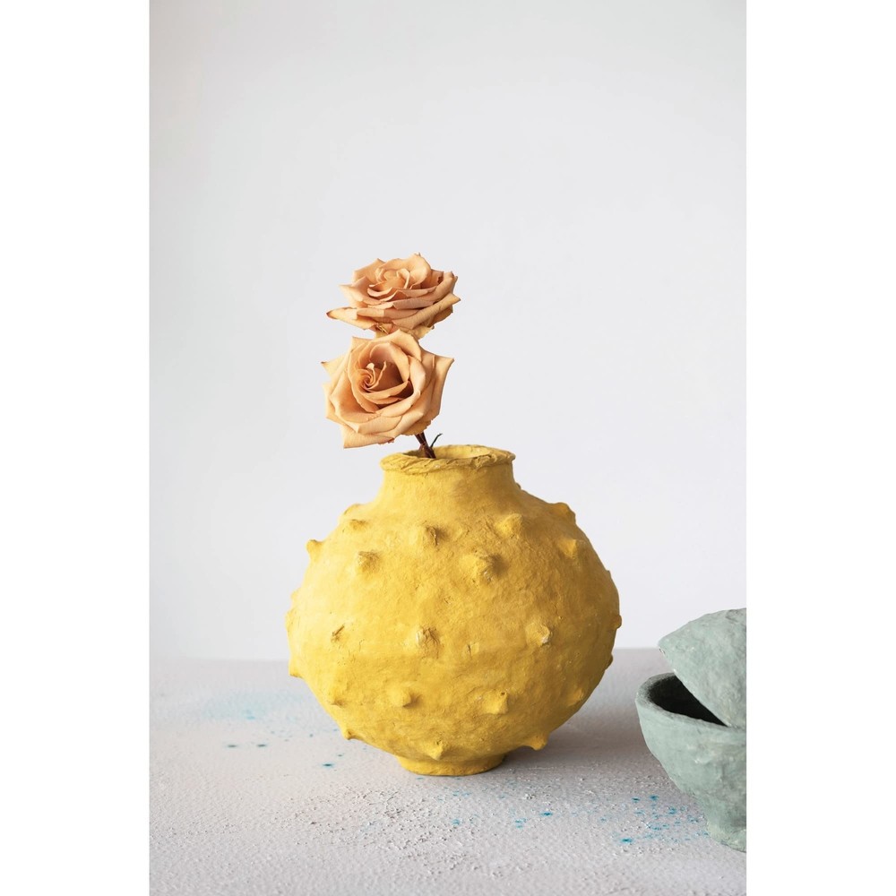 Creative Co-Op Decorative Handmade Paper Mache Raised Dots Vase, 12" L x 12" W x 12" H, Mustard Product Details Material: Paper Color: Mustard Brand: Creative Co-Op Product Dimensions: 12"L x 12"W x 12"H Shape: Round Material: Paper Color: Mustard Brand: Creative Co-Op Product Dimensions: 12"L x 12"W x 12"H Shape: Round Style: Contemporary Special Feature: Handmade, Paper Mache Pattern: Solid Theme: Space Recommended Uses For Product: Decorative Finish Type: Distressed Matte Number of Pieces: 1 Occasion: Women, Mother's Day, Wedding, Graduation Installation Type: Decorative Mounting Type: Table UPC: 191009467991 Global Trade Identification Number: 91 Manufacturer: Creative Co-Op Item Weight: 5.59 pounds Country of Origin: India Item model number: DF5978 Finish types: Distressed Matte Assembly required: No Warranty Description: None. Batteries required: No Included Components: Vase This artisanal decorative vase showcases naturally variating paper mache construction with a contemporary raised dot design Paper mache vase with raised dot design in distressed matte mustard finish Add a touch of natural beauty to any gathering space with this one-of-a-kind vase Made from 100% paper mache Vase measures 12" L x 12" W x 12" H Add a touch of natural beauty to any gathering space with this one-of-a-kind vase; Made from 100% paper mache; Vase measures 12" L x 12" W x 12" H