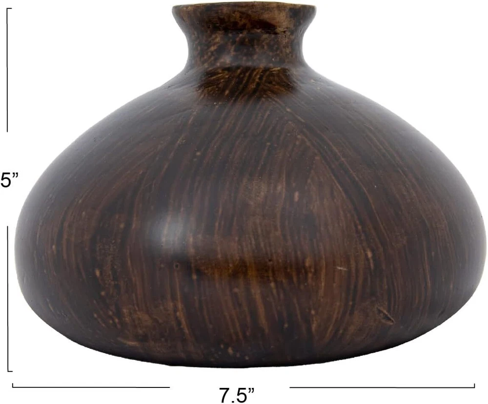Creative Co-Op Decorative Paulownia Wood, Espresso Finish Vase Item Description This boho-inspired vase features naturally variating paulownia wood in a timeless silhouette Fill with dried seasonal flora or display alone as a one-of-a-kind standalone accent Intended for decorative use only; Not food safe or water tight Made from 100% paulownia wood 7.5 inches diameter x 5 inches H › See more product details Our thoughtfully crafted collection of vases showcases an expansive array of silhouettes, textures, and hues designed to display seasonal flora, dried botanicals, faux fronds, or delicate blooms. Explore a vast selection of sizes, styles, and functions for the perfect artful accent, including decorative bottles, sculptural vessels, sets of bud vases, combination vase/candleholders, figurine vases, oversized urns, etched hurricanes, hand-blown glass statement-pieces, and so much more. Choose from a wide range of materials from stoneware and ceramic to etched mercury glass and reclaimed wood, and styles from mid-century modern and classic farmhouse to vintage glam and boho. Curate freshly cut flower arrangements or dried flora inside pieces from this artfully designed collection, or display alone as stylish statements. Payment fast and free shipping Shipping safe payment via ebay . Return 30 Day's returns