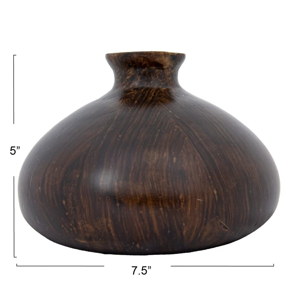 Creative Co-Op Decorative Paulownia Wood Vase, Espresso Finish Product Details Color: Espresso Finish Brand: Creative Co-Op MPN: EC1413 UPC: 191009589310 EAN: 0191009589310 Material: Paulownia Wood Color: Espresso Finish Brand: Creative Co-Op Shape: Figurine,Modern Style: Modern Material: Paulownia Wood Color: Espresso Finish Brand: Creative Co-Op Shape: Figurine,Modern Style: Modern Pattern: Solid Theme: Flora,Flower,Wood Recommended Uses For Product: Decorative Room Type: Living Room, Bedroom Number of Pieces: 1 Occasion: Women, Mother's Day, Wedding, Graduation Installation Type: Decorative UPC: 191009589310 Manufacturer: Creative Co-Op Package Dimensions: 8.78 x 8.11 x 7.24 inches Item Weight: 1.83 pounds Country of Origin: China Item model number: EC1413 Warranty Description: None. Batteries required: No Included Components: Vase This boho-inspired vase features naturally variating paulownia wood in a timeless silhouette Fill with dried seasonal flora or display alone as a one-of-a-kind standalone accent Intended for decorative use only; Not food safe or water tight Made from 100% paulownia wood 7.5 inches diameter x 5 inches H Our thoughtfully crafted collection of vases showcases an expansive array of silhouettes, textures, and hues designed to display seasonal flora, dried botanicals, faux fronds, or delicate blooms. Explore a vast selection of sizes, styles, and functions for the perfect artful accent, including decorative bottles, sculptural vessels, sets of bud vases, combination vase/candleholders, figurine vases, oversized urns, etched hurricanes, hand- blown glass statement-pieces, and so much more. Choose from a wide range of materials from stoneware and ceramic to etched mercury glass and reclaimed wood, and styles from mid-century modern and classic farmhouse to vintage glam and boho. Curate freshly cut flower arrangements or dried flora inside pieces from this artfully designed collection, or display alone as stylish statements.