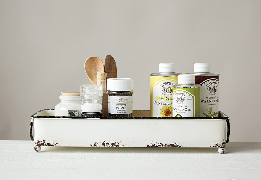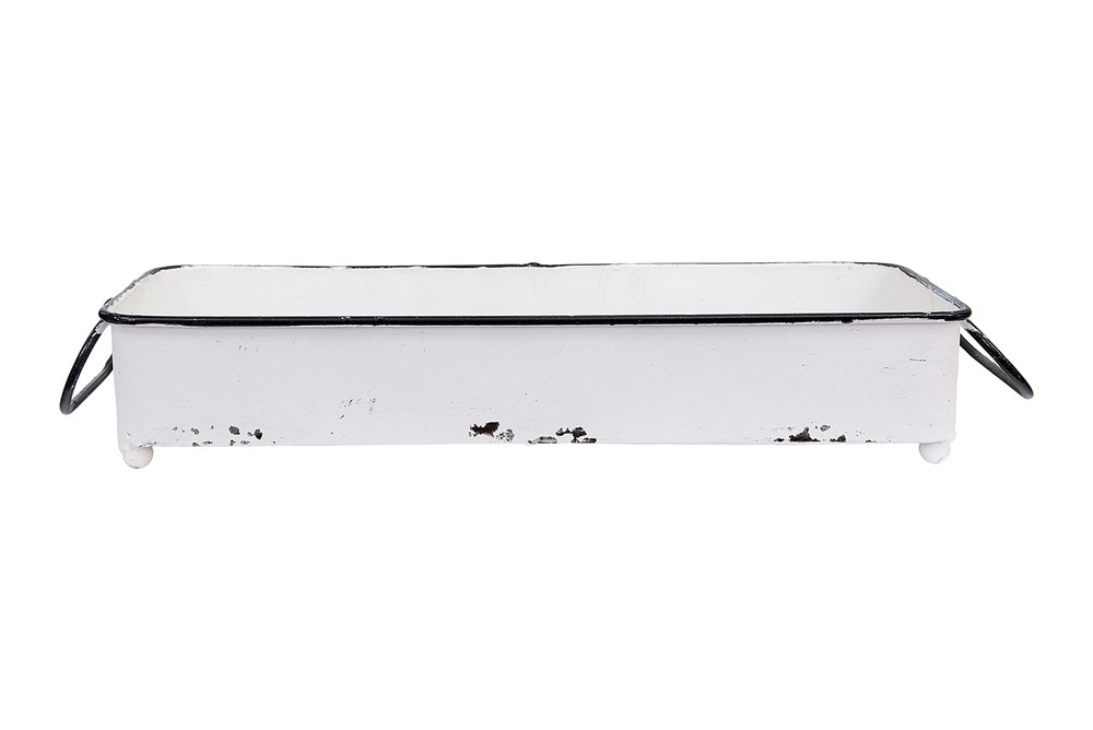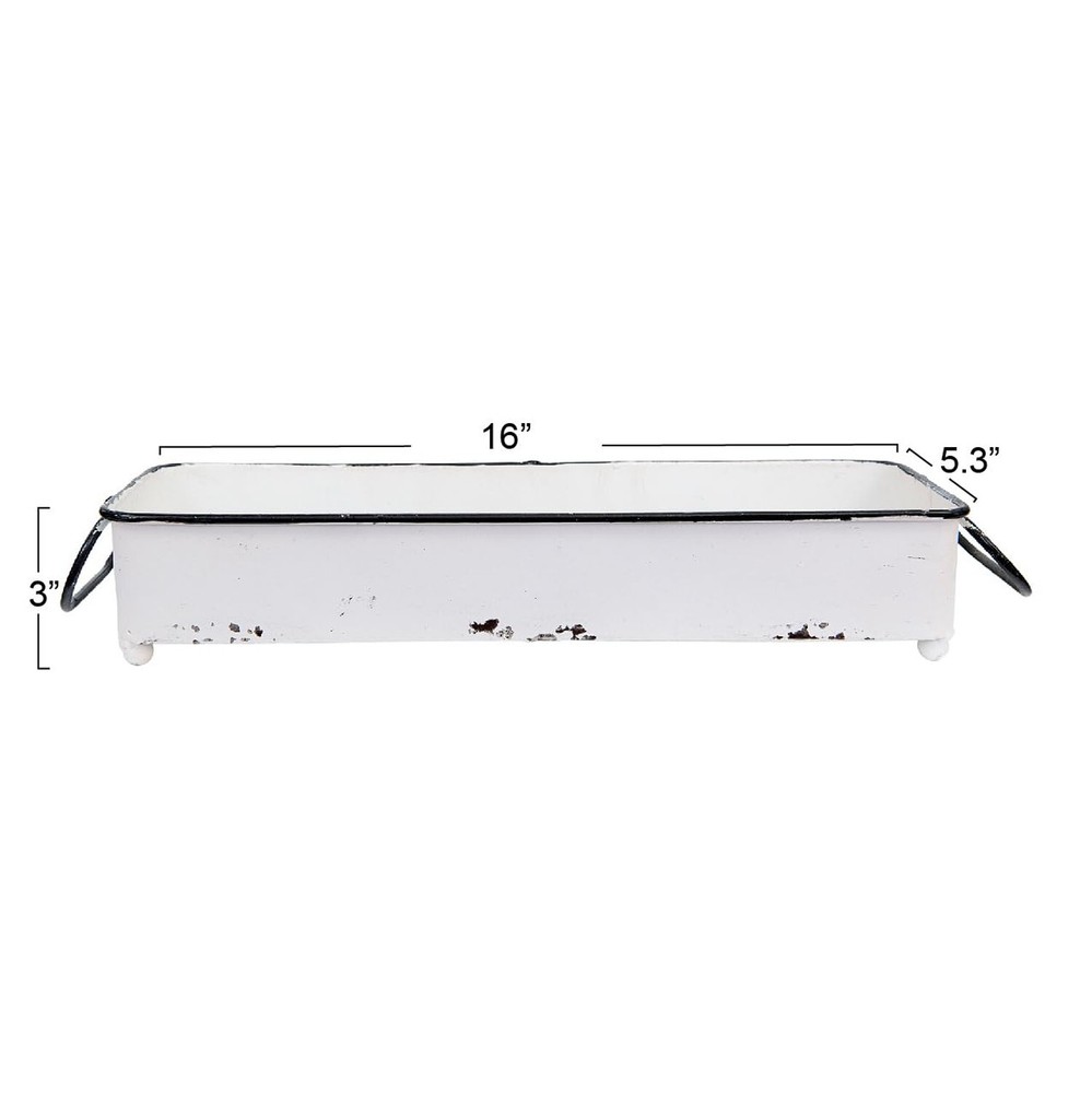 Creative Co-Op Decorative Rectangle Distressed Metal Tray Product Details Color: White Style: Tray Brand: Creative Co-Op MPN: DA8543 UPC: 191009061984 EAN: 0191009061984 Brand: Creative Co-Op Color: White Material: Aluminum Product Dimensions: 16"L x 5.25"W x 3"H Shape: Rectangular Brand: Creative Co-Op Color: White Material: Aluminum Product Dimensions: 16"L x 5.25"W x 3"H Shape: Rectangular Tray Type: Decorative Metal Tray Special Feature: Durable Style: Tray Finish Type: Distressed Number of Items: 1 Product Care Instructions: Wipe with Dry Cloth Pattern: Solid Item Weight: 11.2 ounces Maximum Weight Recommendation: 0.7 Pounds Is Dishwasher Safe: No Occasion: Wedding, Anniversary, Birthday UPC: 191009061984 Is Oven Safe: No Global Trade Identification Number: 84 Manufacturer: Creative Co-Op Country of Origin: China Item model number: DA8543 Finish types: Distressed Assembly required: No Number of pieces: 1 Warranty Description: None. Batteries required: No Included Components: tray This vintage-inspired portable tray features durable metal construction and two functional handles in a distressed enamel finish Fill with bath products, kitchen essentials, or decorative accents for a stylish display For decorative use only; Not food safe Made from iron and enamel 16 inches L x 5.25 inches W x 3 inches H Intentionally curate an elegant, storied space with Creative Co-Op's thoughtfully crafted collection of decorative storage, designed to transform clutter while adding depth and texture to any space. Peruse a vast selection of unique, display-worthy pieces created to stylishly streamline a space of any design scheme, including baskets, magazine racks, log holders, trays, towel stands, lidded containers, and so much more. Choose from a wide array of materials from woven seagrass and bamboo to rattan and iron, and styles from mid-century modern and bohemian to classic farmhouse and coastal. Elegantly stow unsightly odds and ends, or display treasured trinkets with decorative storage that is sure to impress.