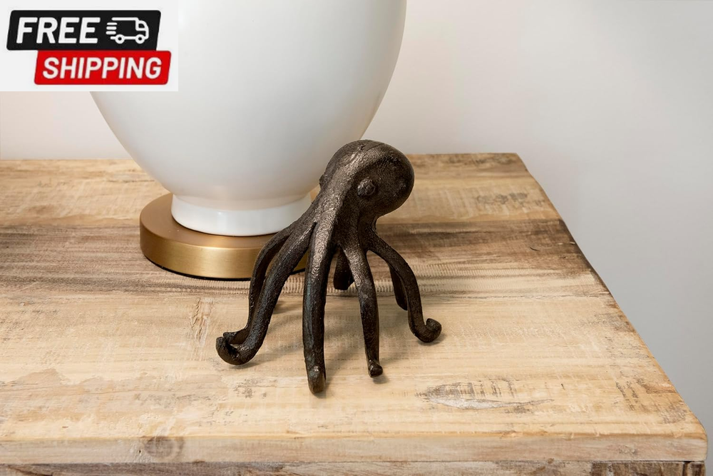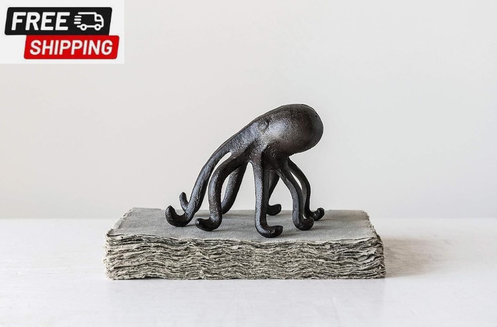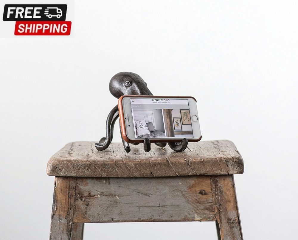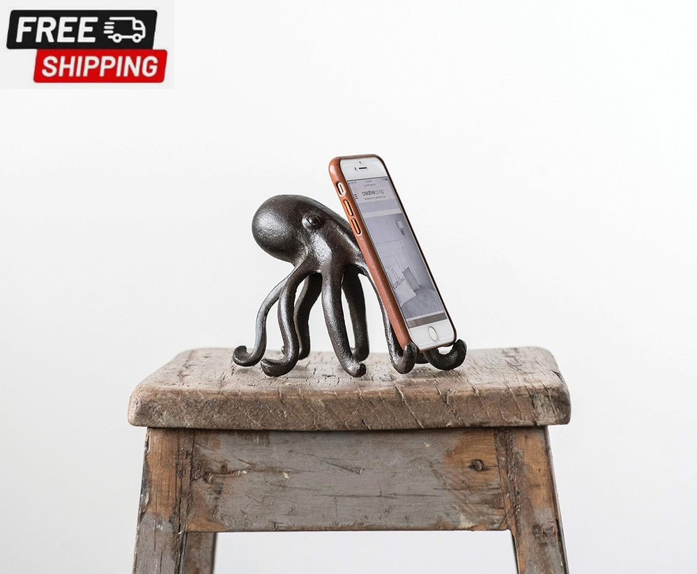 Creative Co-Op Eclectic Cast Iron Octopus Figurine Phone/Tablet Holder, Dark Brown This playfully designed decorative accent showcases a cast iron silhouette of an octopus Place phone or tablet on the 2 front arms of the octopus to enjoy videos or follow recipes while cooking Please note that this accent is only compatible with select phone and tablet models Made from 100% cast iron Octopus accent measures 6 inches L x 5.25 inches W x 4.75 inches H; Opening for device is 0.5 inches W The Eclectic Cast Iron Octopus Figurine Phone/Tablet Holder is unique and playful decorative accent that doubles as a convenient device holder. Crafted from 100% cast iron, this figurine showcases a charming octopus silhouette that's sure to catch the eye of any guest. Not only is it a conversation starter, but this octopus figurine also serves as a practical accessory. Simply place your phone or tablet on the two front arms of the octopus to enjoy your favorite videos or follow recipes while cooking. Please note that this holder is only compatible with select phone and tablet models, so be sure to check the size of your device before purchasing. With its dark brown finish, this eclectic accent will effortlessly blend with any decor style. Shipping Fast shipping is very important for us. Our standard US shipping service is FREE. Your order will be shipped within 2-3 business days upon full payment received. Your order will be delivered within 2-3 business days after the handling time. We only ship to the confirmed PayPal address. We reserve the right to cancel any order for any reason at any time. We are not responsible for undeliverable addresses. Returns and payment We offer a 30 days return policy from checkout winning date. We allow only PayPal as payment method FeedBack Your feedback very important to us, after you get your package and you are satisfied with our service please leave us positive feedback If you have any problem with your order / any questions please before leave any type of feedback For any questions, using eBay contact system Please visit our eBay store to check out other items for sale! Thank you for shopping at our store.