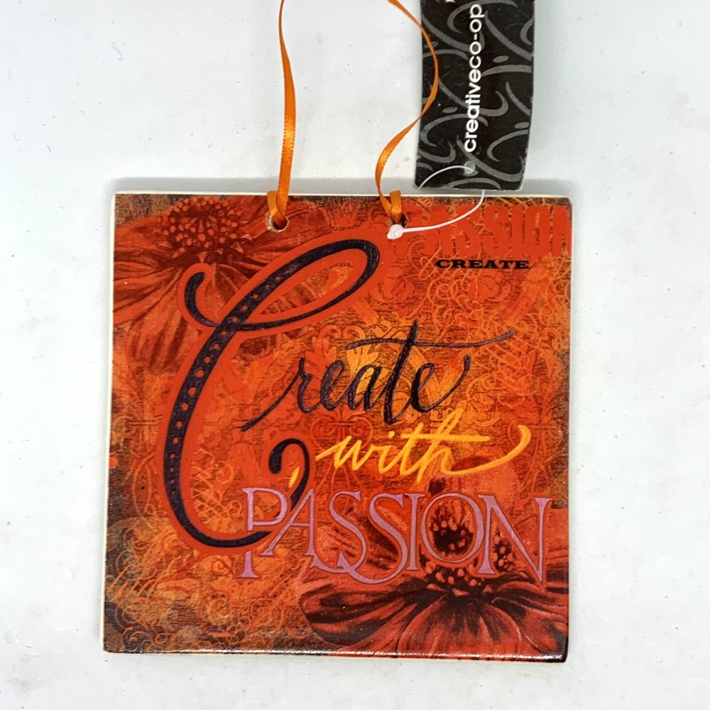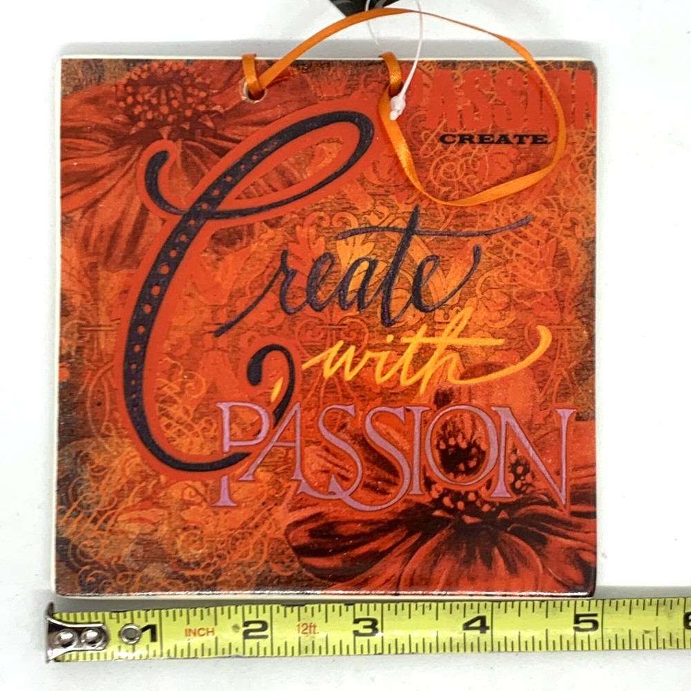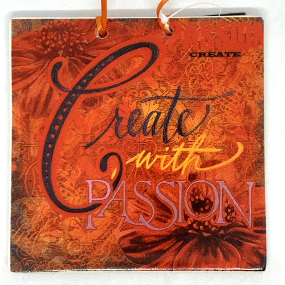 Creative Co-Op Elizabeth Tipton Art Tile “CREATE WITH PASSION” Red & orange floral Beautiful Fall colors New Please check out my other listings and feel free to message me with any questions you may h...