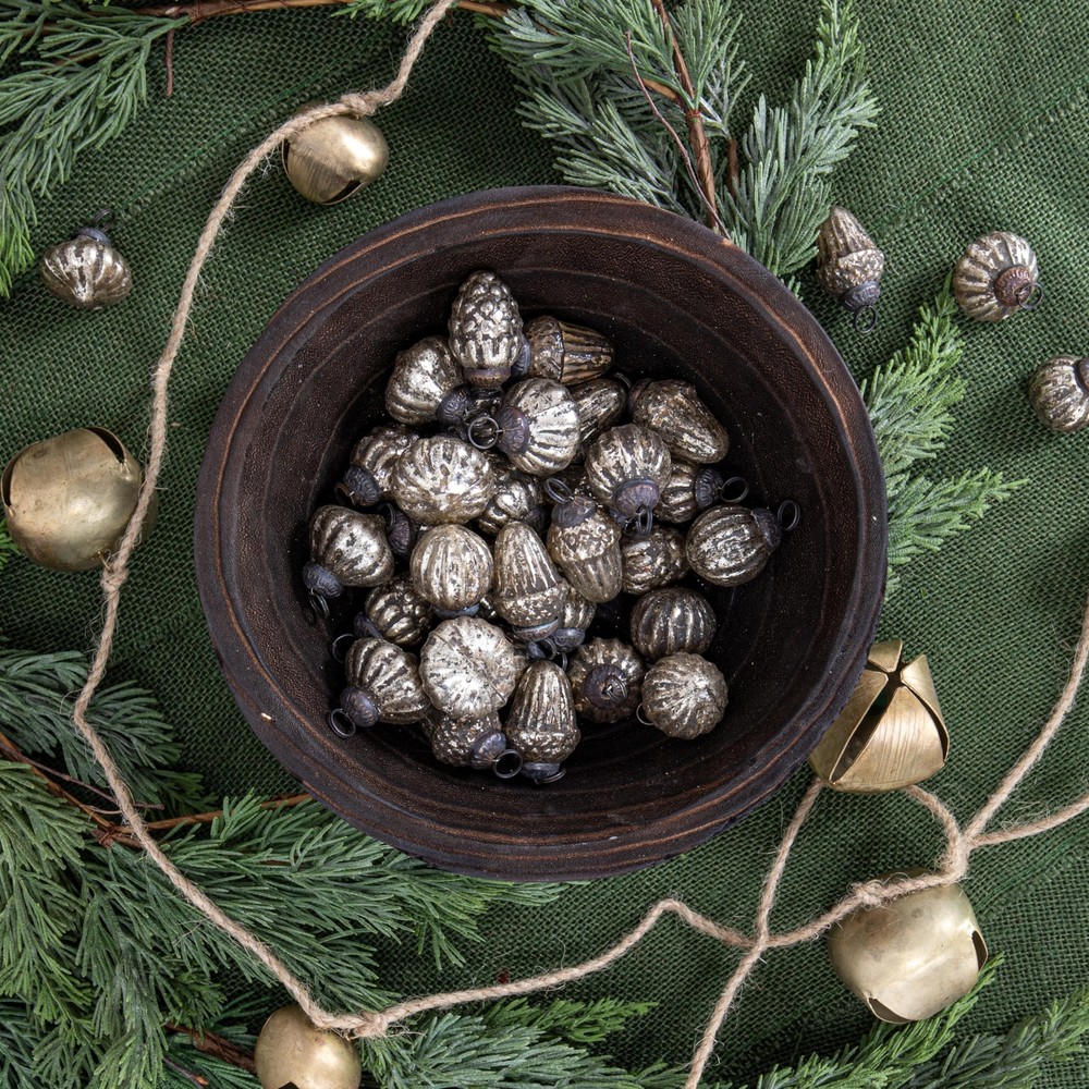 Creative Co-Op Embossed Mercury Glass Ornaments in Organza Bag, Distressed Gray, Set of 36 Product Details Product Dimensions: 9 x 4.5 x 3.5 inches Item Weight: 12.3 ounces Manufacturer: Creative Co-Op Country of Origin: India Item model number: XM3248 Fabric Type: Nullify Perfume: Unscented Assembly required: No Number of pieces: 36 Warranty Description: None. Batteries required: No Included Components: Cord And String Nullify This vintage-inspired set of mercury glass ornaments showcases intricately embossed designs in a variety of festive silhouettes Display in a basket or vase, or hang traditionally on a tree Ornaments feature a heavily distressed oxidized silver finish Made from 100% glass Each ornament measures 1" tall Breathe new life into the holiday decor with this unique set of mercury glass ornaments. Our "Silent Night" collection provides a modern take on classically designed holiday décor. Fill your home with rich textures and gilded details that will elevate seasonal gatherings. Display in a basket or vase, or hang traditionally on a tree. Made from 100% glass. Ornaments feature a heavily distressed oxidized silver finish. Packaged set measures 9 inches L x 4.5 inches W x 3.5 inches H.