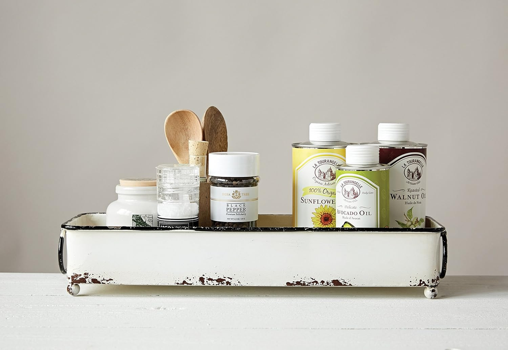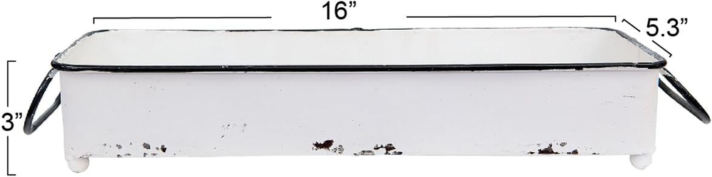 Store New Arrivals Add to Favorite View Feedback Contact Creative Co-Op Farmhouse Decorative Metal Tray with 2 Handles, Distressed White Description Item model number DA8543 Style Tray Number of Items 1 Assembly required No Pattern Solid Country of Origin China Warranty Description None. Is Oven Safe No Batteries required No Brand Creative Co-Op Material Iron Maximum Weight Recommendation 11.2 ounces Finish Type Distressed Manufacturer Creative Co-Op Is Dishwasher Safe No Item Weight 11.2 ounces Occasion Wedding, Anniversary, Birthday Special Feature Durable Color White Global Trade Identification Number 00191009061984 Shape Rectangular Recommended Uses For Product Food Tray Type Decorative Metal Tray Finish types Distressed Included Components tray Product Dimensions 16"L x 5.25"W x 3"H Product Care Instructions Wipe with Dry Cloth Number of pieces 1 This vintage-inspired portable tray features durable metal construction and two functional handles in a distressed enamel finish Fill with bath products, kitchen essentials, or decorative accents for a stylish display For decorative use only; Not food safe Made from iron and enamel 16 inches L x 5.25 inches W x 3 inches H Intentionally curate an elegant, storied space with Creative Co-Op's thoughtfully crafted collection of decorative storage, designed to transform clutter while adding depth and texture to any space. Peruse a vast selection of unique, display-worthy pieces created to stylishly streamline a space of any design scheme, including baskets, magazine racks, log holders, trays, towel stands, lidded containers, and so much more. Choose from a wide array of materials from woven seagrass and bamboo to rattan and iron, and styles from mid-century modern and bohemian to classic farmhouse and coastal. Elegantly stow unsightly odds and ends, or display treasured trinkets with decorative storage that is sure to impress. ABOUT US We offer the best prices around on high quality products. Our E-store includes media such as books, movies, music and games while offering electronics, toys, sporting apparel, clothing, tools, general home, garden items and more. SHIPPING We are always working hard to ensure your package arrives as soon as possible. Please understand that some factors like weather, high postal traffic, and the performance of shipping companies are outside of our control. We offer free shipping to the lower 48 states and ship within 2 business days of payment, usually sooner. We do not accept P.O. Boxes. Please provide a physical address. RETURNS We offer a 30-Day Return Policy on items which you are not completely satisfied with. You have the option for a full-refund or an exchange of the item. No returns are available on items shipped outside of the USA. PAYMENT We accept PayPal. CONTACT US This page content is yet to come Please ad us to your favorite seller and visit again later Thank You CUSTOMER SATISFACTION We try our very best to make sure every customer is completely satisfied. If there's a problem, message us! We're happy to help.