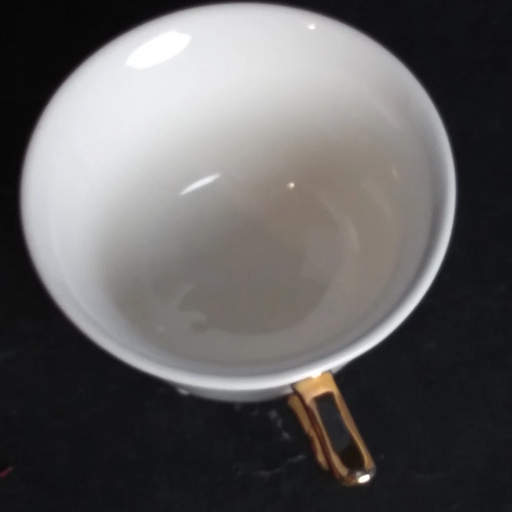 Creative Co-Op Footed Tea Cup "Gin" White with Gold Handle 4.25" x 2.75" EUC, like new...