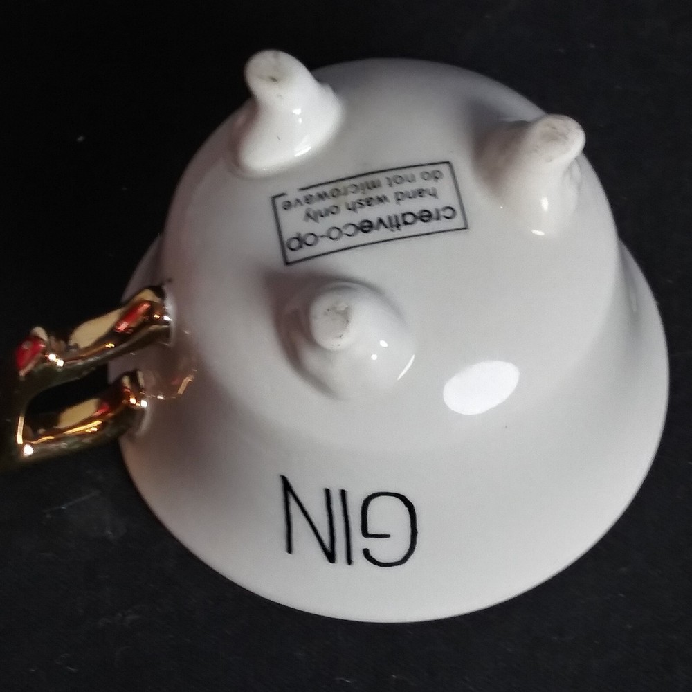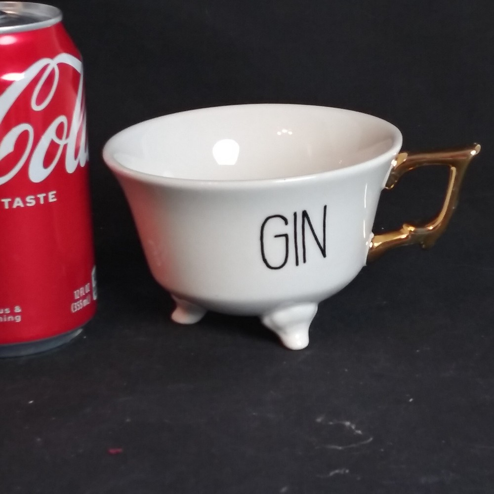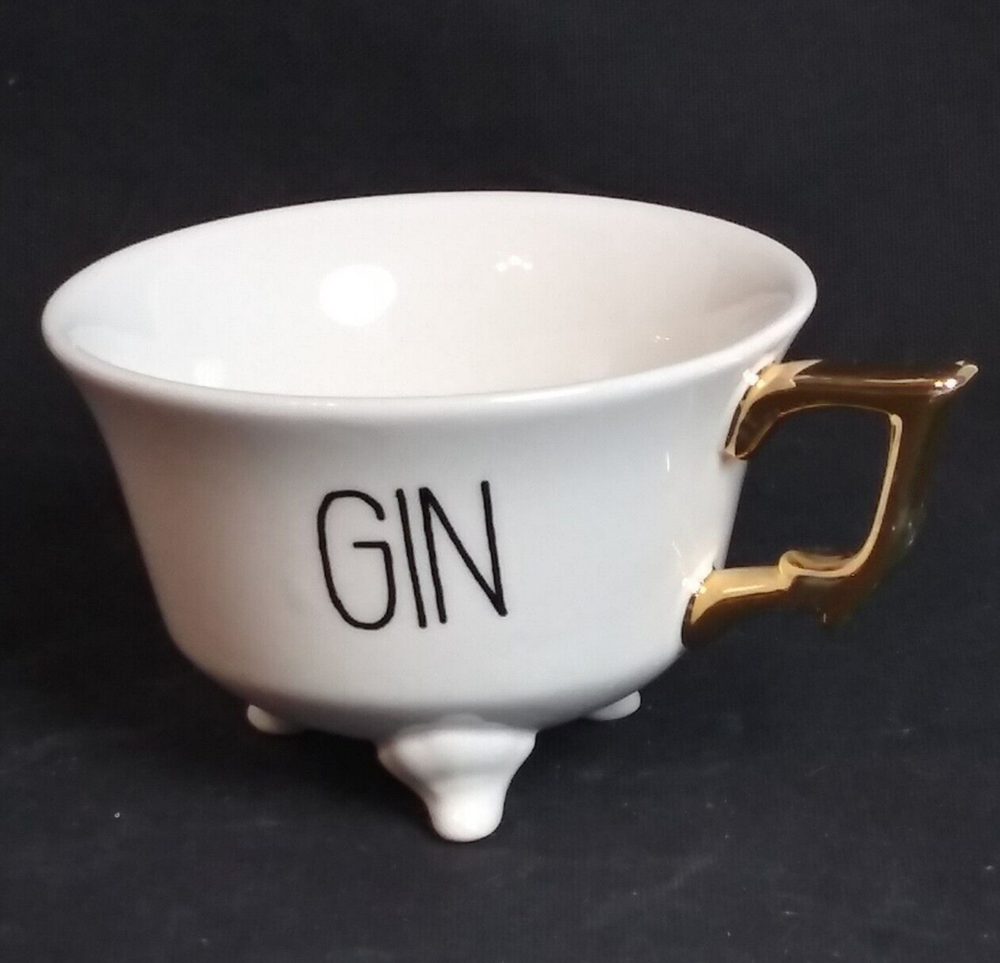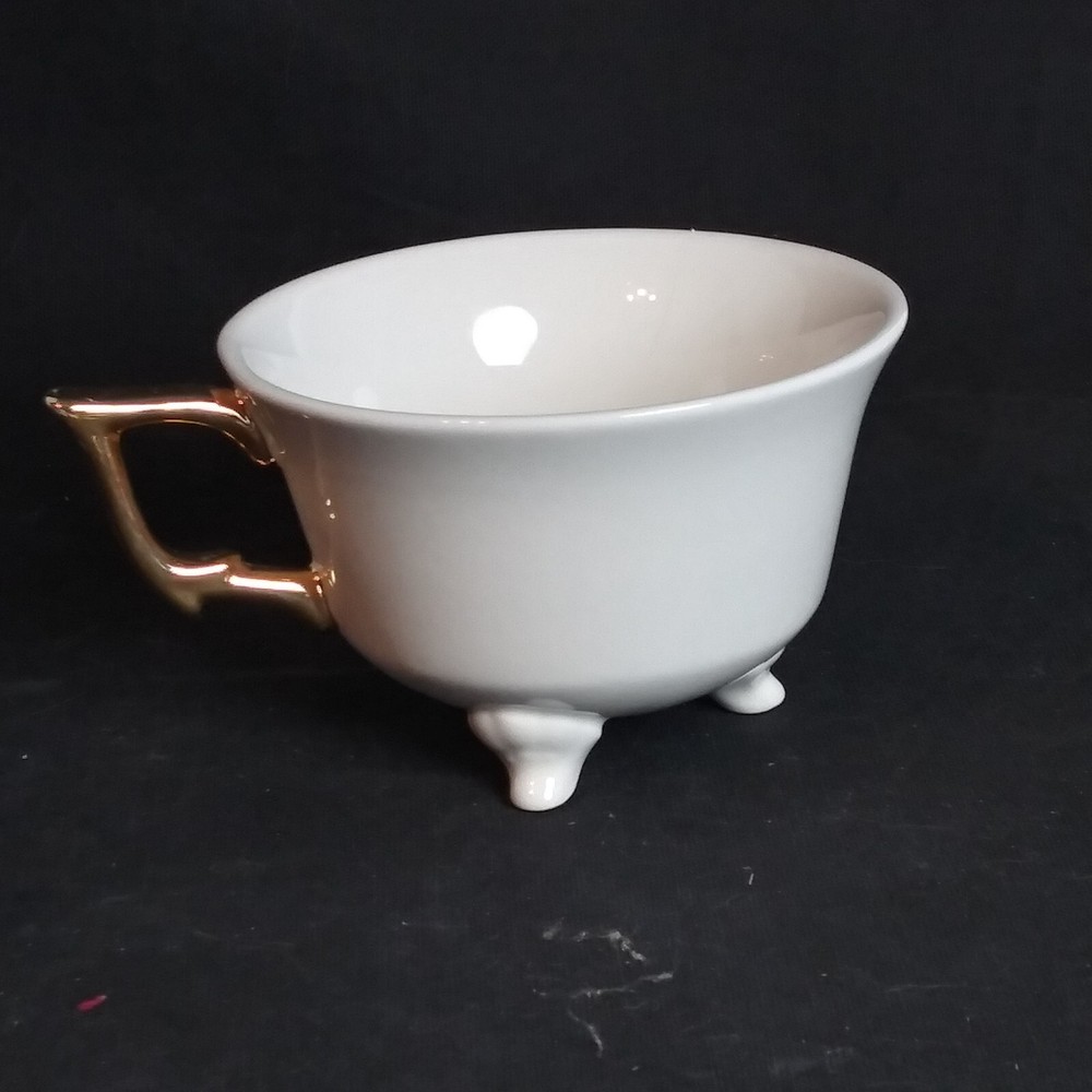 Creative Co-Op Footed Tea Cup "Gin" White with Gold Handle 4.25" x 2.75" EUC, like new