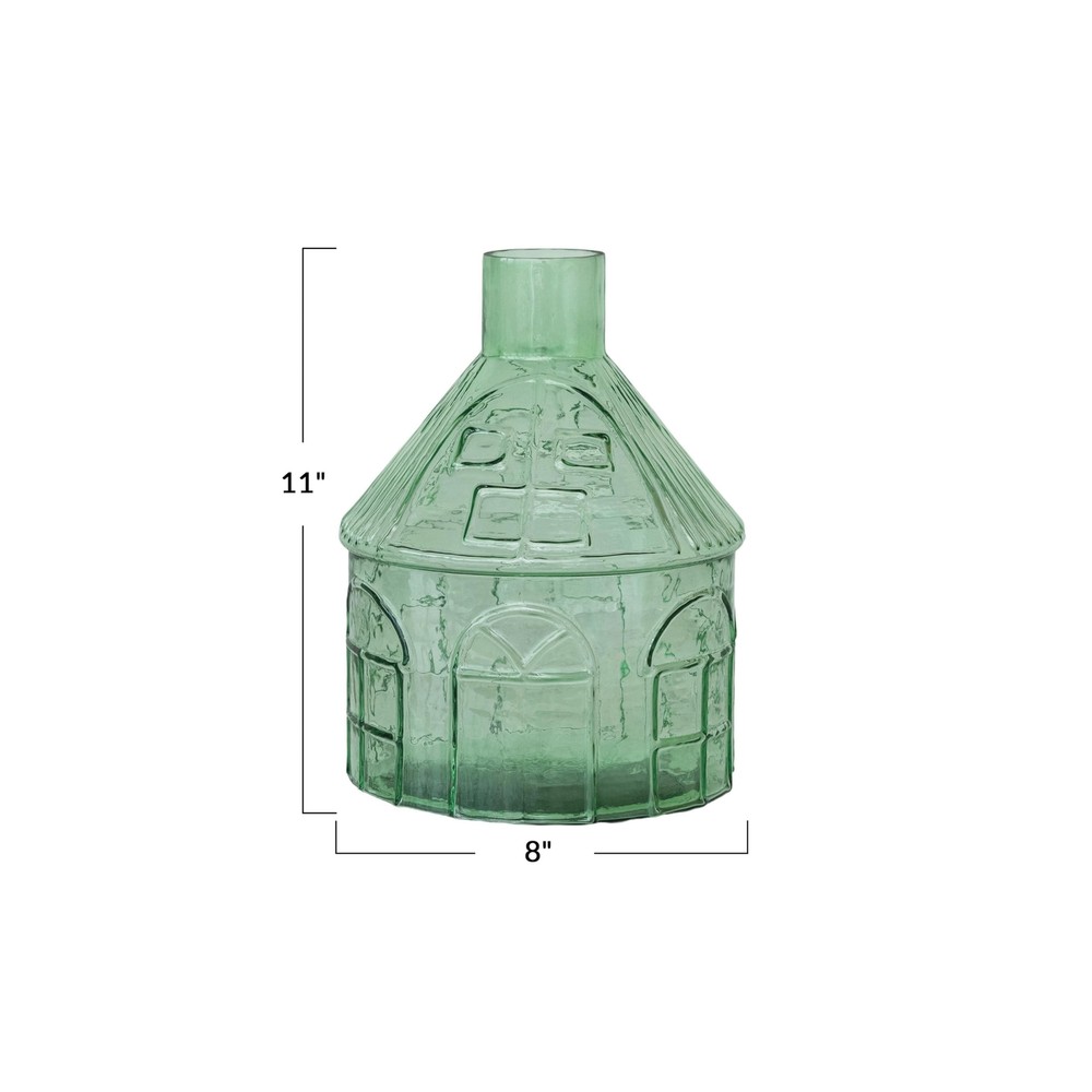 Creative Co-Op Glass House-Shaped Vase, Green Product Details Size: 8" Round x 11"H Brand: Creative Co-Op MPN: DF9354 UPC: 191009670117 EAN: 0191009670117 Material: Glass Color: Light Green Brand: Creative Co-Op Product Dimensions: 8"L x 8"W x 11"H Shape: House-shaped Material: Glass Color: Light Green Brand: Creative Co-Op Product Dimensions: 8"L x 8"W x 11"H Shape: House-shaped Style: Eclectic Special Feature: Holds Water, Easy to Clean Pattern: Solid Theme: Love Recommended Uses For Product: Décor Room Type: Living Room, Bedroom Finish Type: Glossy Number of Pieces: 1 Occasion: Women, Mother's Day, Graduation, Wedding UPC: 191009670117 Manufacturer: Creative Co-Op Item Weight: 5.64 pounds Country of Origin: India Item model number: DF9354 Finish types: Glossy Batteries required: No A whimsical green glass vase in the shape of a house, offering a playful yet elegant vessel for botanical displays This vase is a versatile piece that fits effortlessly into Eclectic, Farmhouse, or French Country decor styles Ideal for holding fresh flowers or creating a terrarium, it brings a touch of greenery to any room Made of green glass that is durable and easy to clean 8" Diameter x 11 H This Decorative Vase captures the imagination with its house-like form and vibrant green hue. Standing 11 inches tall and 8 inches round, it's a statement piece that invites nature into the home. Whether filled with lush foliage, colorful flowers, or left empty to admire its unique shape, this glass vase is a delightful addition to any space seeking a blend of whimsy and elegance. Its round base ensures stability, while the glass material offers both beauty and practicality, making it a cherished item for those who appreciate a touch of the eclectic in their decor.