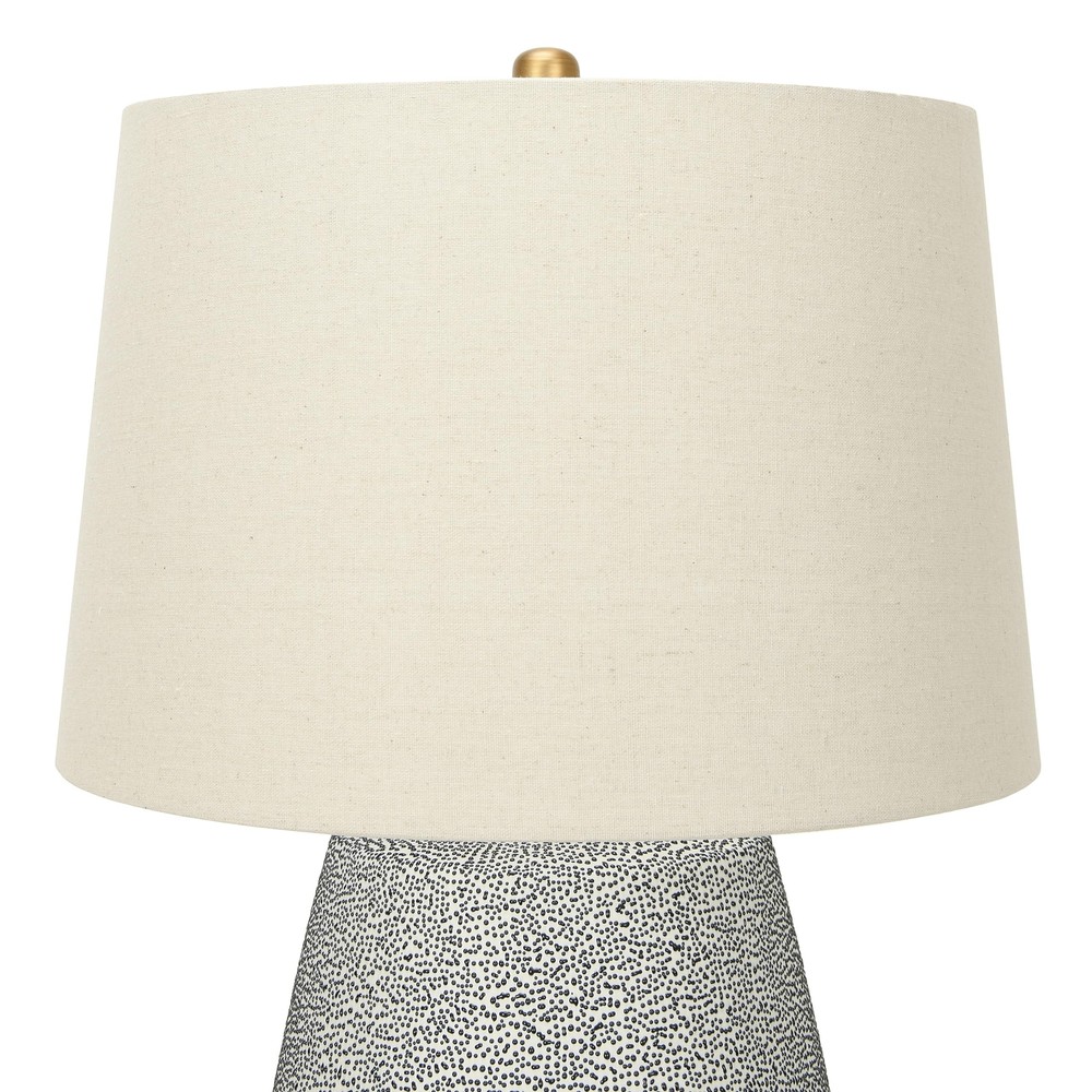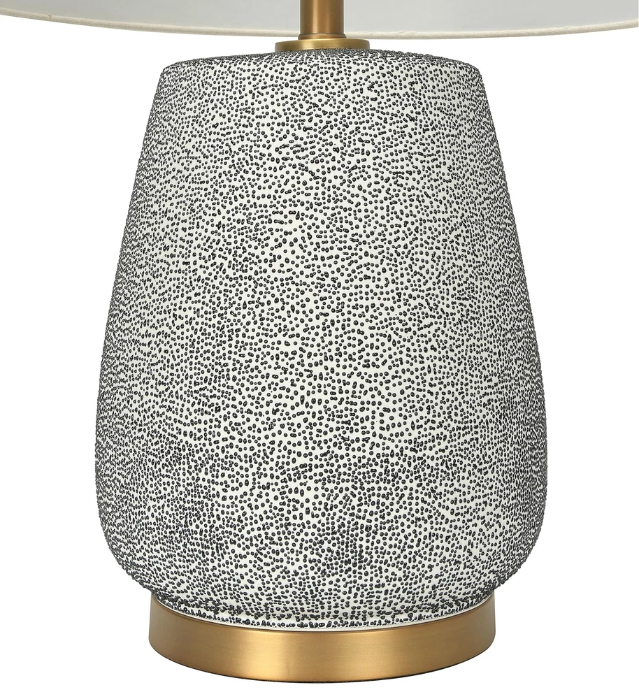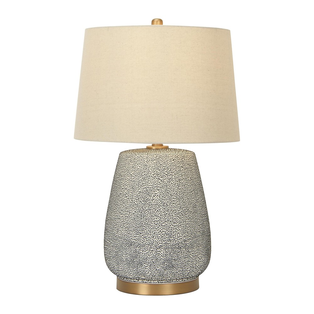 Creative Co-Op Glaze Ceramic Natural Linen Shade Table Lamp, Blue Textured Round Product Details Finish Type: Brushed Base Material: Ceramic Product Dimensions: 16"D x 16"W x 26"H Lamp Type: Table Lamp Shade Color: beige Finish Type: Brushed Base Material: Ceramic Product Dimensions: 16"D x 16"W x 26"H Lamp Type: Table Lamp Shade Color: beige Shade Material: Ceramic Switch Type: Touch Style: Farmhouse Brand: Creative Co-Op Color: Blue Textured Round Light Source Type: LED Material: Ceramic, Linen Room Type: Bedroom Power Source: Corded Electric Shape: barrel Number of Light Sources: 1 Connectivity Technology: USB Included Components: Bulb, Shade Is Waterproof: False Bulb Shape Size: B10 Mounting Type: Tabletop Wattage: 100 watts Number of Items: 1 Lighting Method: electric Indoor/Outdoor Usage: Indoor Installation Type: Tabletop Number of Pieces: 1 Voltage: 1.2E+2 Volts (AC) Is Cordless?: No UPC: 191009352655 Manufacturer: Creative Co-Op Shade Height: 24 Inches Item Weight: 14.07 pounds Country of Origin: China Item model number: EC0405 Finish types: Brushed Assembly required: No Warranty Description: None. Batteries required: No This ceramic table lamp is a statement piece for your home. It features an empire-styled shade This farmhouse table lamp features a beautiful beige shade made with linen. The brushed gold accents anda blue textured glaze on a ceramic base This side table lamp is ideal for placement in the foyer or the bedroom The light requires 1 Type-A lightbulb (not included) of a maximum of 100 watts The lamp measures 16'' in length, 16'' in width and26'' in height. It also includes a 5' long cord Ceramic Table Lamps for Living Room andBedroom - Lighten Your Mood andthe Ambience This ceramic table lamps is an ideal addition to your home. You can place it in the foyer to spruce up the entrance of your home or use it as a bedside lamp to create a cozy reading nook. Textured Design This bed lamp is made with an eye-catching, blue textured glaze andbrushed gold accents on a ceramic base. Its distinct style stands out in any setting.