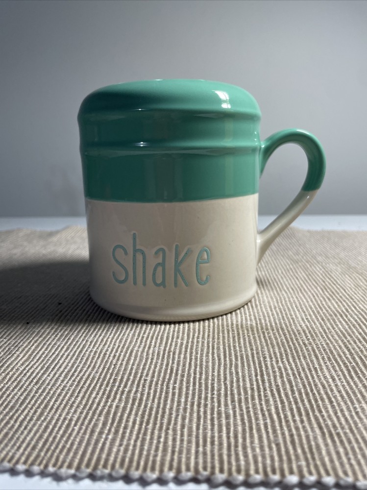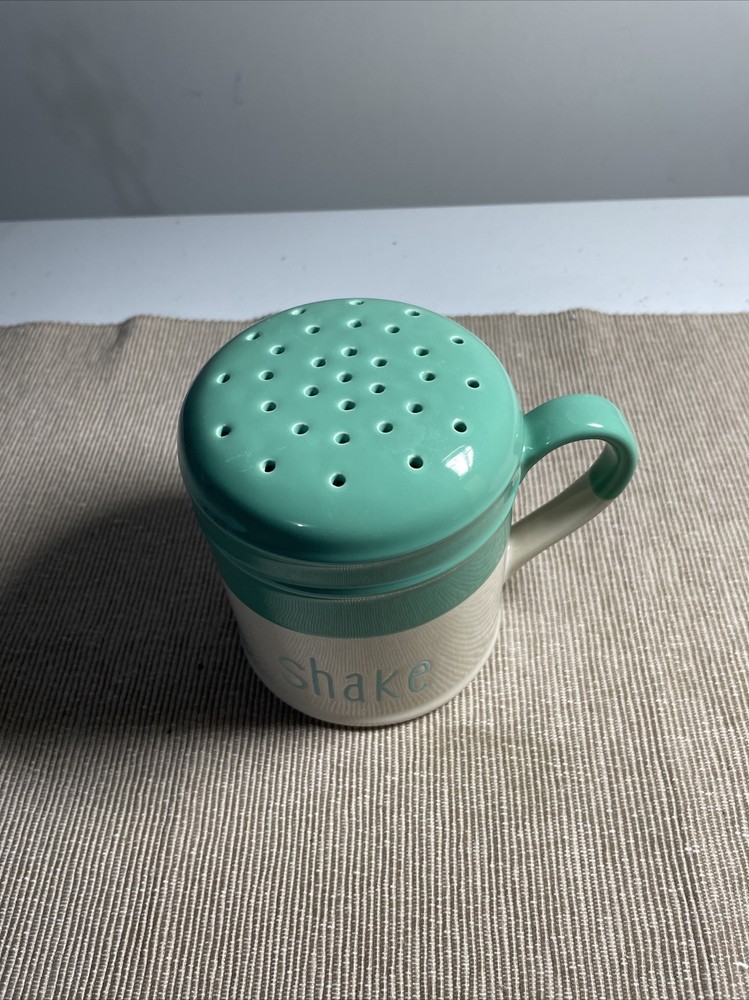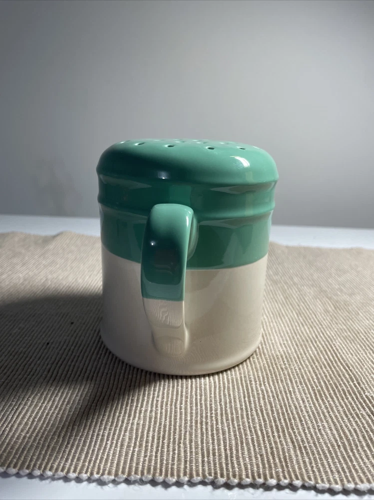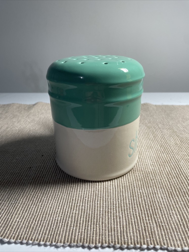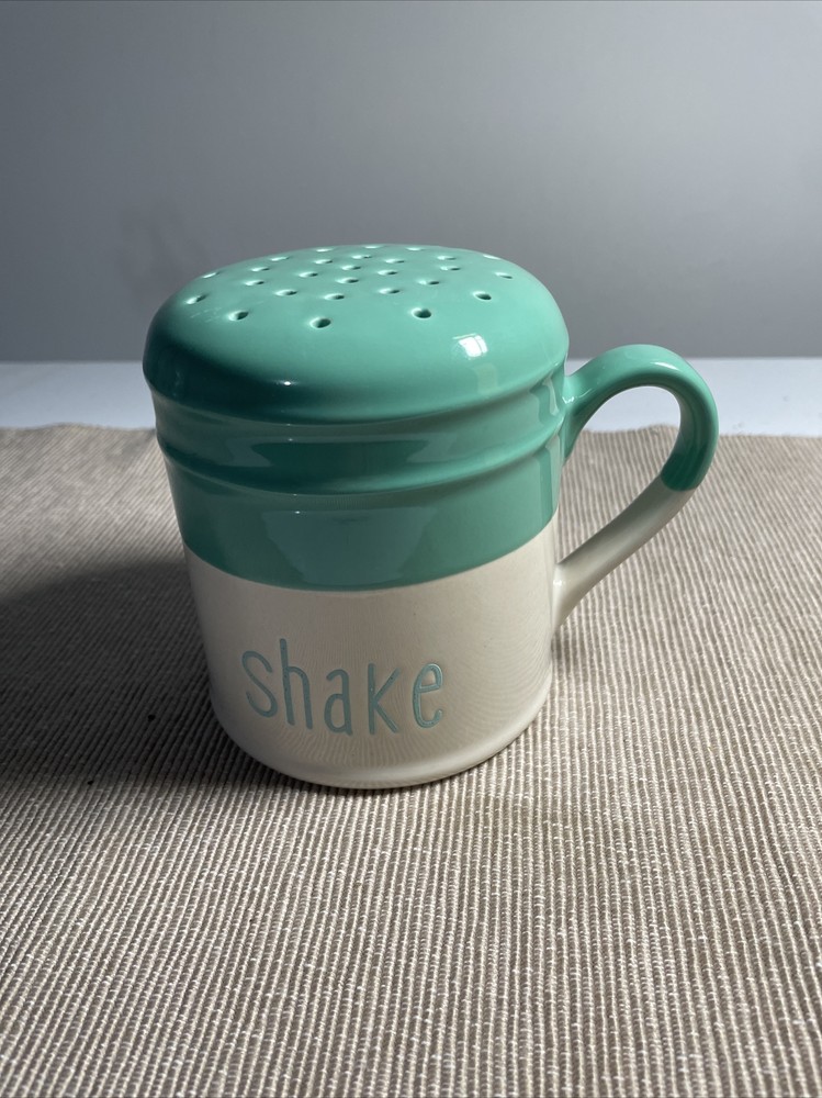 Creative Co-Op Green And White Ceramic "SHAKE" Kitchen Ptarmigan Cheese Shaker. condition is pre owned, no chips, cracks or dings. This shaker looks like it has never been used. Please look closely at the pictures for any imperfections. Shipped with USPS Tracked and handled with love and care.