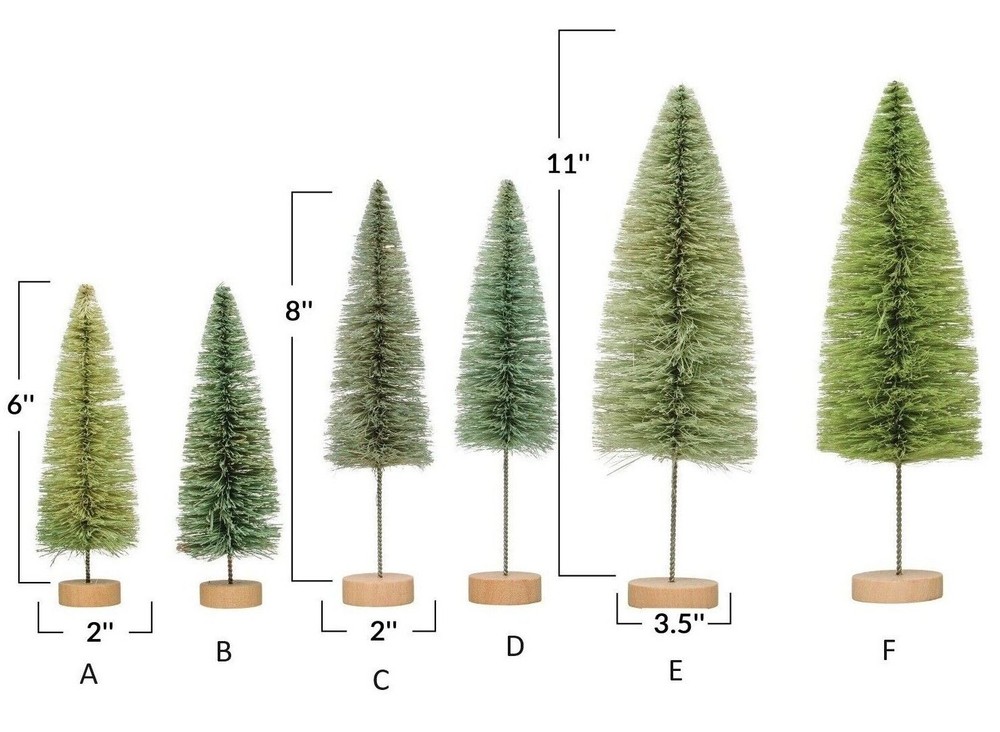 Creative Co-Op Sisal Bottle Brush Tree - Please see below for Shipping Discount when purchasing multiple items from my store! This listing is for ONE Sisal Bottle Brush Tree..Pick your size and shade of Green by A, B, C, D, E or F Approximate Sizes: A and B are both 6" Tall. C and D are both 8" Tall. E and F are both 12" Tall. See picture Brand new Please look carefully at all pictures and ask any questions before buying as there are NO RETURNS Shipping Discount : When purchasing ANY items in my store, PLEASE do the following: Put each item you want to purchase in your cart by clicking "Add to Cart". When you are finished adding all the items you wish to purchase, click on the Cart at the top of the page. Then click on "Go to Checkout" and the shipping discount will be automatically applied. You are only charged full price shipping on one item in your cart (the one with the highest shipping cost if different kinds of items are purchased) If you have any problems, please let me know. For this particular item, Shipping cost for first one is $4.50. Any additional items in this listing will have a shipping cost of $1.00 when purchased and paid for in the same order at the same time . This is automatically calculated at check out. I DO NOT refund shipping charges when items are purchased separately.