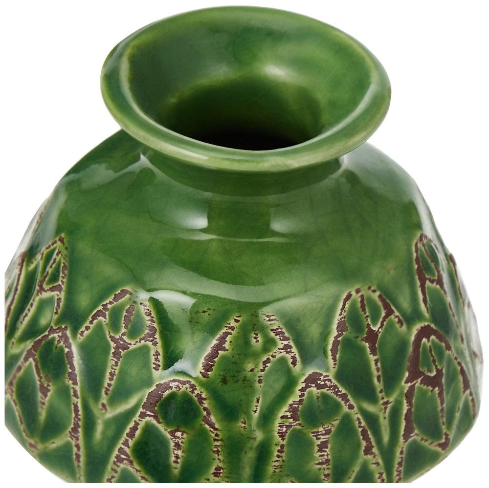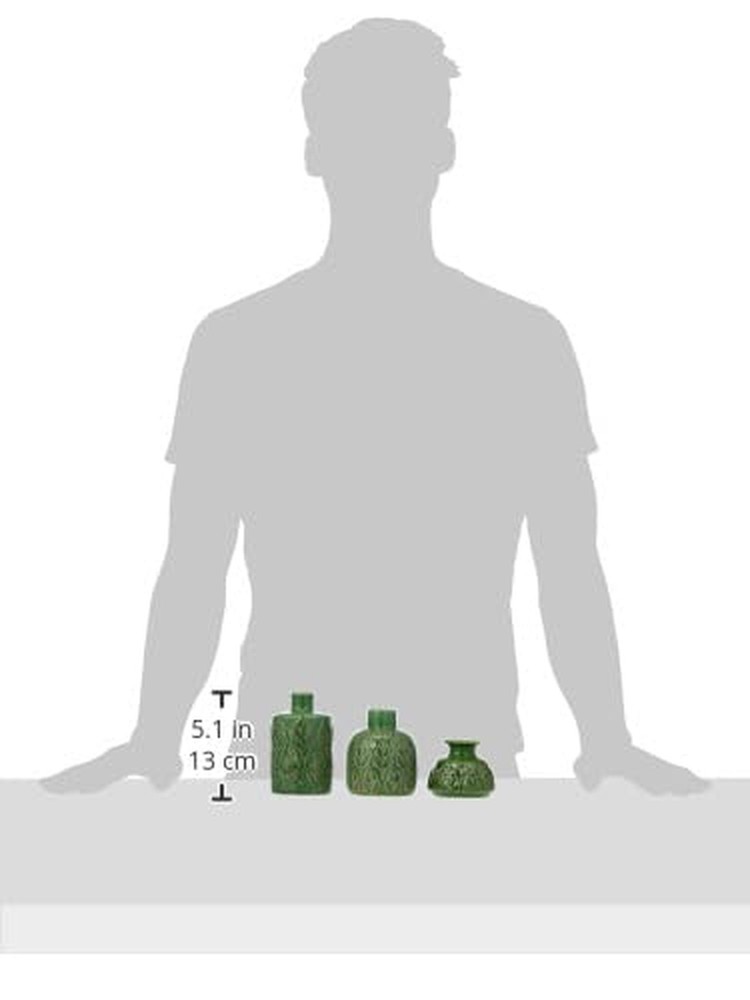 Creative Co-Op Green Embossed Stoneware Vases (Set of 3 Sizes) Product Details Material: Stoneware Color: Green Brand: Creative Co-Op Product Dimensions: 2.5"L x 2.5"W x 4.5"H Shape: Vase Material: Stoneware Color: Green Brand: Creative Co-Op Product Dimensions: 2.5"L x 2.5"W x 4.5"H Shape: Vase Style: Garden Special Feature: Embossed Pattern: Floral Theme: Flowers Recommended Uses For Product: Indoor Room Type: Bathroom, Living Room, Bedroom Number of Pieces: 3 Occasion: Women, Mother's Day, Wedding, Graduation Item Weight: 0.48 Pounds Installation Type: Freestanding, Countertop UPC: 191009171867 Global Trade Identification Number: 67 Manufacturer: Creative Co-Op Item Weight: 7.7 ounces Country of Origin: China Item model number: DF0274 Warranty Description: None. Batteries required: No Stoneware construction Small: 3.25"L x 3.25"W x 2.25"H Medium: 3.5"L x 3.5"W x 3.75"H Large: 3"L x 3"W x 4.5"H Use this set of embossed stoneware vases add a botanist flair to your home. Place your favorite fresh flower for an additional pop of color