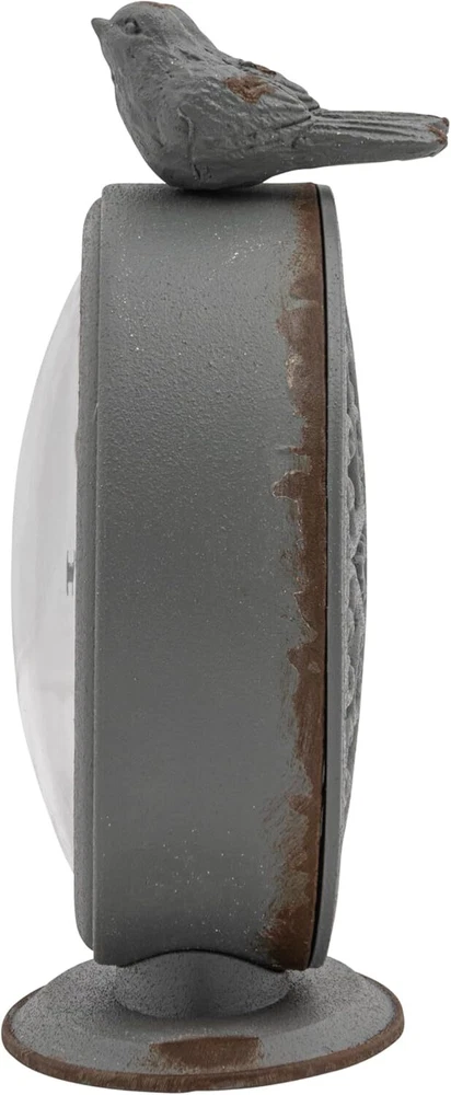 Creative Co-Op Grey Pewter Mantel Clock with Birds Item Description About this item A lovely and whimsical accessory, this pewter mantel clock features a grey color and two birds perched on the top This mantel clock can add a touch of nature and beauty to any decor style, especially cottage, farmhouse, or shabby chic Made from pewter, glass, and plastic materials The clock requires 1 AA battery (not included) to operate The clock measures 4.75 inches in length, 2.5 inches in width, and 6 inches in height › See more product details This pewter mantel clock with a bird adds a touch of nature and beauty to the home. This lovely clock features a grey color, giving it a vintage and distressed look. The clock face has Arabic numerals and black hands contrasting with the grey background. The clock has two birds perched on top, adding charm and personality. The clock requires one AA battery (not included) to operate. It has a quartz movement that ensures accurate timekeeping. The clock measures 4.75 inches in length, 2.5 inches in width, and 6 inches in height. This mantel clock is a perfect gift for the self or someone special who loves nature and whimsy. Whether it is a touch of sophistication to the home or impress the guests with exquisite taste, this clock is the perfect choice. Payment Free & Fast Shipping Shipping safe payment . Return 30 Day's returns