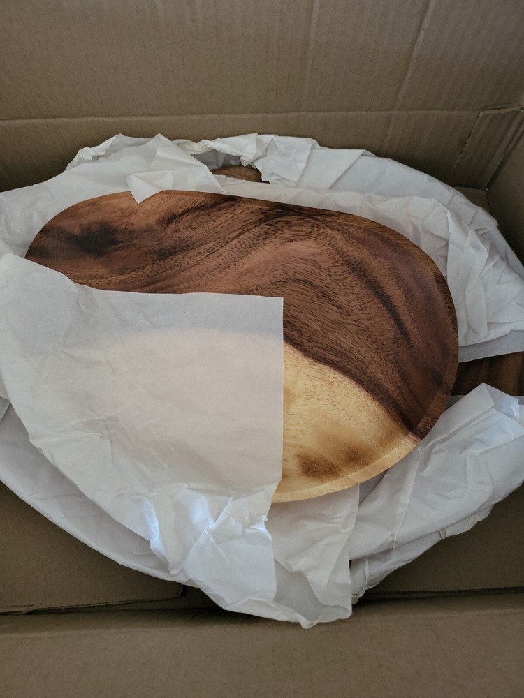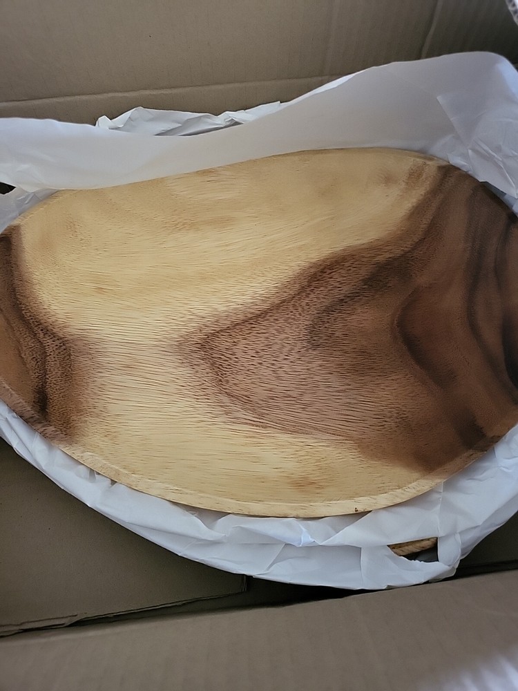 Creative Co-Op Hand-Carved Acacia Wood, Set of 3 Bowl Set, 16" L x 12" W x 2" H,. Condition is New. Shipped with USPS Priority Mail.