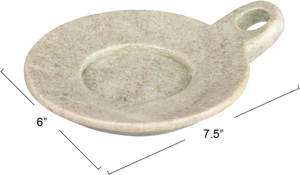 Creative Co-Op Hand-Carved Marble Handle, Beige Dish, 6" 6", Product Details Material: Ceramic, Marble, Stone Brand: Creative Co-Op Color: Beige Special Feature: Scented Occasion: Wedding, Anniversary, Birthday Shape: Rectangular Seasons: All Seasons Pattern: Marble Product Care Instructions: Wipe with Dry Cloth Size: 6" Item Weight: 400 Grams Is Microwaveable: No Is Dishwasher Safe: No Included Components: Dish Product Name: Dish Package Dimensions: 9.49 x 7.83 x 3.27 inches Item Weight: 14.1 ounces Manufacturer: Creative Co-Op Country of Origin: India Item model number: EC1453 Number of pieces: 1 Batteries required: No This elegant dish showcases naturally variating, hand-carved marble construction in a stylishly versatile silhouette Dish can be used as a candle holder, soap dish, spoon rest, or trinket and jewelry holder Please note that each dish is meticulously hand-carved from naturally variating marble; Every piece will vary slightly in color and grain Made from 100% naturally variating marble Dish measures 7.5 inches L x 6 inches W This hand-carved marble dish is a beautiful and practical piece that can be used in a variety of ways. Its versatile design allows it to seamlessly blend into any living space, adding a touch of sophistication and natural beauty. Crafted from naturally varying marble, each dish has a unique color and grain that makes it a one-of-a-kind masterpiece. Measuring 7.5 inches L x 6 inches W, it's the perfect size for a range of uses, such as holding your favorite jewelry, a scented candle, or even as a handy spoon rest in the kitchen. With its understated elegance and natural beauty, this dish is sure to become a well-loved favorite in your daily routine. Whether you're using it to hold your trinkets or simply as a decorative accent, this hand-carved marble dish is both practical and visually captivating.
