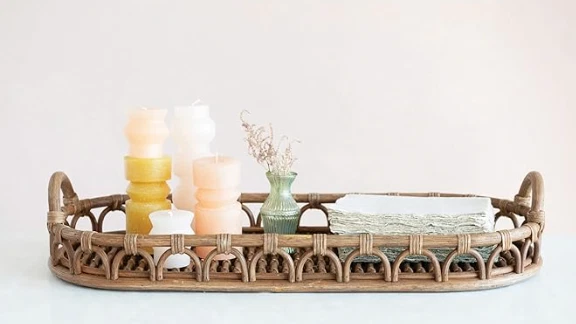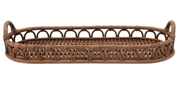 Creative Co-Op Hand-Woven Rattan Handles Tray, 32"L x 13"W x 4"H, Natural $ 52.8 Beautiful.... Flower Bowl quantity Add To Cart Description Specifics Description Beautiful. Specifics Brand Creative Co-Op Color natural Material woven rattan Size Large Type Bed Tray