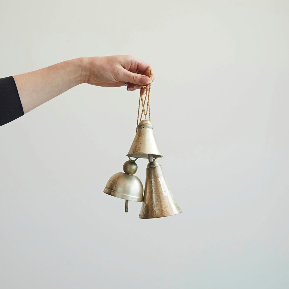 Creative Co-Op Hanging Metal Bells on a Gold String, Distressed Pewter Finish, Set of 3 Product Details Item Dimensions L x W: 2.5"L x 2.5"W Wall Art Form: Wall Hanging Decor Color: Silver; Gold Orientation: Portrait Theme: Holiday Material Type: Metal Mounting Type: Wall Mount Frame Type: Unframed Indoor Outdoor Usage: Indoor Global Trade Identification Number: 96 Manufacturer: Creative Co-Op UPC: 191009638896 Number of Items: 1 Brand: Creative Co-Op A set of 3 hanging metal bells with a charming, distressed pewter finish that jingles with timeless appeal An ideal adornment for those who appreciate a rustic or vintage aesthetic in their holiday decor Ideal for hanging on the Christmas tree, door, or fireplace mantel to add a touch of festive nostalgia Made of metal with a distressed pewter finish, these bells are strung on a lustrous gold string for easy display Measures from 3.25 to 5.25 inches in height, perfect for creating a varied and visually interesting display This set of three metal bells is a delightful nod to Christmases past. Each bell, ranging from 3.25 to 5.25 inches high, is finished in a distressed pewter tone that evokes a sense of vintage charm. They hang gracefully from a gold string, ready to be displayed in the home. The sound of these bells will bring a joyful ambiance to every holiday gatherings, reminiscent of sleigh rides and yuletide celebrations. Whether they're catching the light on the tree or adding a dash of old-world elegance to the doorway, these bells are sure to be a cherished part of any Christmas decor for years to come.