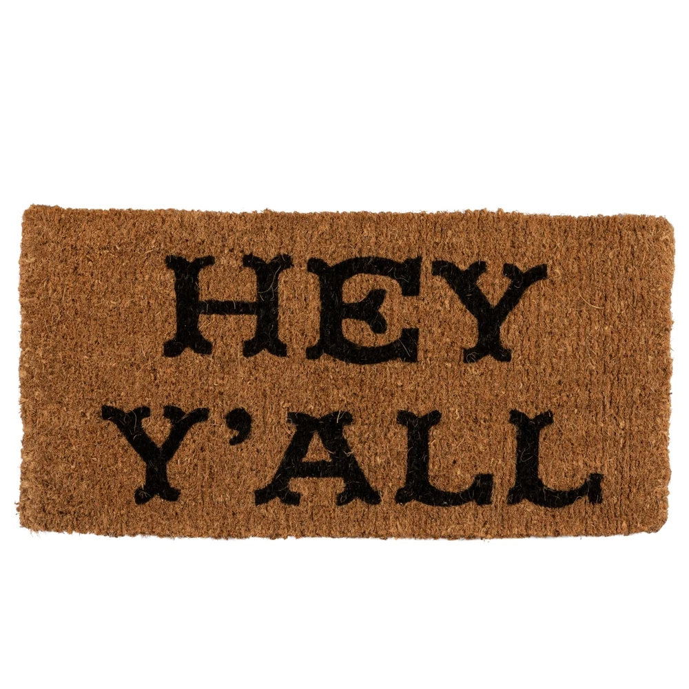 Creative Co-Op "Hey Y'all Natural Coir Doormat Made with natural coir which is the husk of a coconut Vinyl backing For indoor or outdoor use in entryways or patios 32"L x 16"W x 1"H To maximize the life of the mat, use outdoors under a covered porch out of the way of direct weather Your guests will automatically feel welcome with this special coir doormat. If something makes them smile before they even enter your home, it will make your guests more at ease and comfortable. Make the first thing your guests see when they come to the door be this fun "Hey Y'all" doormat. The coir material is perfect for both indoor and outdoor use. To maximize the life of the mat, use outdoors under a covered porch out of the way of direct weather. It can also be vacuumed easily and reacts well to a mild soap. Shipping We offer FREE shipping on specialized orders! We ship within Three business days of payment, usually sooner. We use a selection of shipping services such as UPS, FedEx, USPS etc. We only ship to the lower 48 states, no APO/FPO addresses or PO Boxes allowed. Local pickups and combined shipping options are not provided at this time. Return You can return a product for up to 30 days from the date you purchased it. Any product you return must be in the same condition you received it and in the original packaging. Please keep the receipt. Payment We accept payment by any of the following methods: PayPal Please pay as soon as possible after winning an auction, as that will allow us to post your item to you sooner! Credit/Debit Card Please pay within 2 days of buying now, as it makes it easier to ship as fast as possible to you! Feedback Customer satisfaction is very important to us. If you have any problem with your order, please contact us and we will do our best to make you satisfied. Contact Us If you have any queries, please contact us via ebay. We usually respond within 24 hours on weekdays. Please visit our eBay store to check out other items for sale! Thank you for shopping at our store.