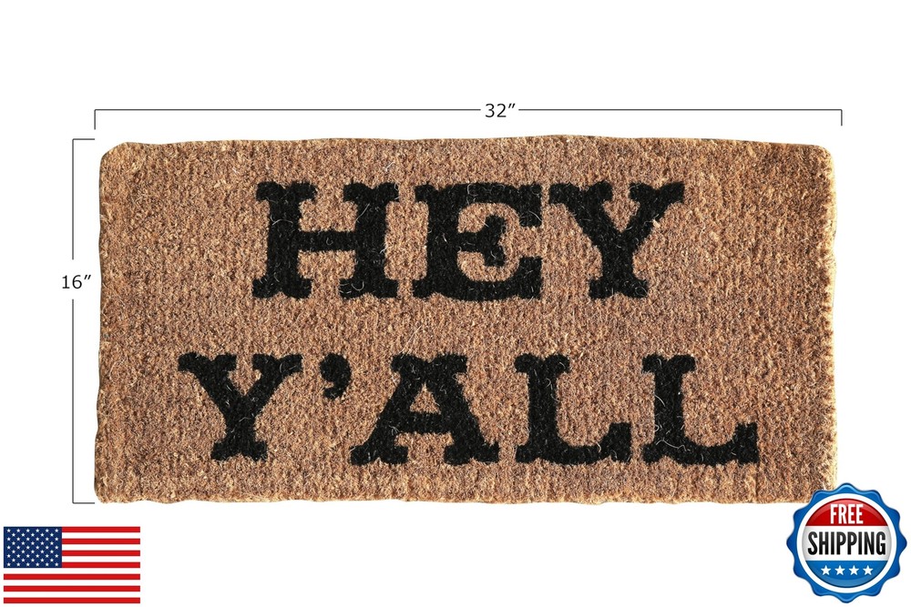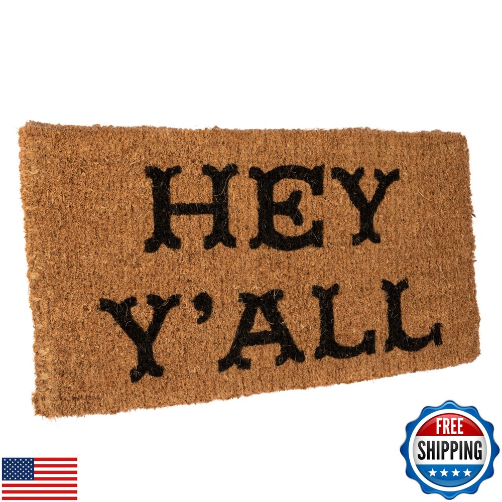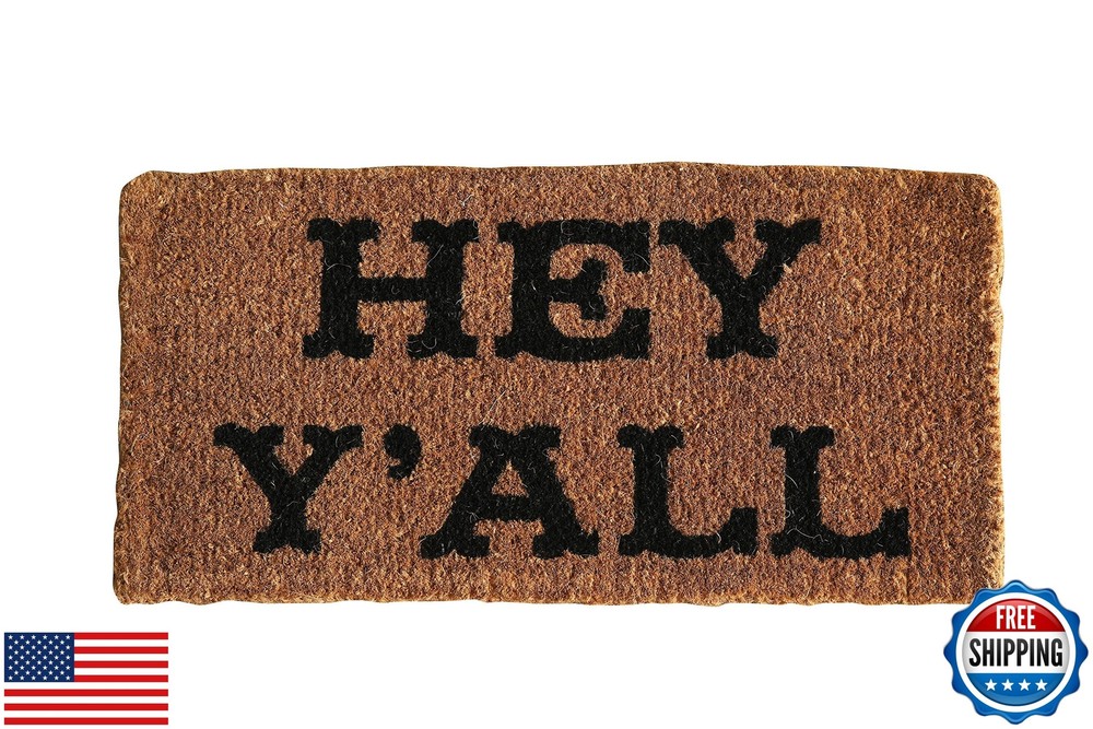 Creative Co-Op "Hey Y'all Natural Coir Doormat Features Made with natural coir which is the husk of a coconut Vinyl backing For indoor or outdoor use in entryways or patios 32"L x 16"W x 1"H To maximize the life of the mat, use outdoors under a covered porch out of the way of direct weather Shipping Free & Fast Shipping: We offer free shipping to most of the USA with a normal delivery time of 3-7 days. However, due to the current situation, additional delivery time (up to 3 weeks) may be required for some items. Alternative Carriers: We may use alternative carriers (e.g., USPS, FedEx, UPS) to ensure your package arrives safely and on time. Due to the use of multiple carriers, we are unable to provide a tracking number automatically. Handling Time: Orders are processed and shipped within 1-2 business days of receiving cleared payment. Shipping Restrictions: Shipping to Alaska, Hawaii, Puerto Rico, Guam, and other US territories may incur shipping charges or delivery restrictions. Please contact us before ordering, or your order can be refunded/cancelled. State Restrictions: Certain items may not be shipped to California due to state regulations. Contact for Tracking Updates: If you require tracking updates or have any concerns about the delivery of your order, please feel free to contact us, and we will be happy to assist you. Return Policy 30-Day Hassle-Free Returns: If you are not completely satisfied with your purchase, you can return the item for free within 30 days of receiving it for a full refund or exchange. Easy Return Process: Contact us, and we will provide you with a prepaid return shipping label and detailed instructions. No Restocking Fee: There are no restocking fees for returns. However, the buyer is responsible for return shipping costs if the return is not due to a seller's error. Refund Processing: Refunds will be processed within 1 business day of receiving the returned item in its original condition. Payment We accept all major credit cards, PayPal, and Apple Pay for your convenience. Your payment information is secure and encrypted to ensure a safe and seamless transaction. Please complete your payment within 3 days of purchase to avoid any delays in shipping. Feedback Your feedback is extremely important to us. We strive to provide the best products and customer service possible. If you are satisfied with your purchase, please take a moment to leave us a positive review. If you have any concerns or issues with your order, please contact us before leaving negative feedback. We are committed to resolving any problems and ensuring your satisfaction. Contact Us If you have any questions or concerns, please feel free to reach out to our customer support team. You can contact us through the eBay messaging system. We are available Monday to Friday, 9:00 am to 5:00 pm EST, and we will do our best to respond to your inquiry within 24 hours. Thank you for supporting our small family business!