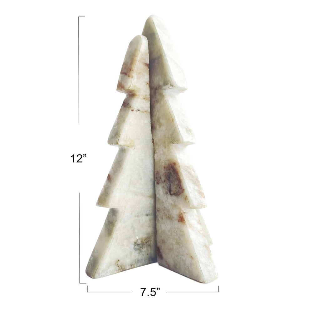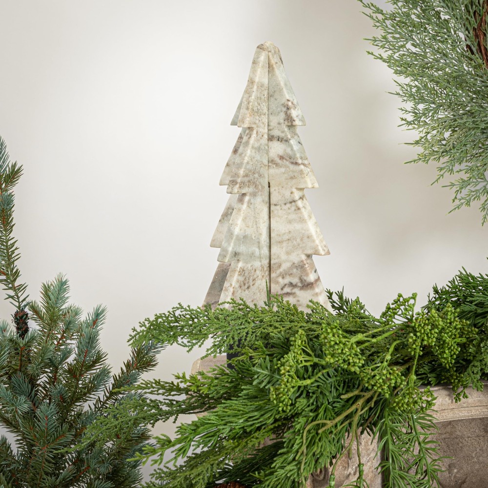 Creative Co-Op Interlocking Marble Tree Decor, Mint and Chocolate Brown Marble Coloring This cream-interlocking marble tree is a lovely and unique way to decorate for the holidays. It features a marble tree that has a cream color and an interlocking design, creating a stunning and eye-catching effect. The tree has a natural and elegant look that can suit any style and theme, from traditional to modern. The tree is ideal for displaying on a table, mantel, shelf, or window sill, where it can add a touch of charm and warmth to the space. The tree can also be easily assembled and disassembled, making it a convenient and reusable option. The tree is made of marble that is durable, smooth, and easy to clean, making it a long-lasting and high-quality option. It measures 7.5 inches in diameter and 12 inches in height, making it a graceful and noticeable centerpiece. Elevate the holiday decor with this eye-catching Christmas tree, adding both style and a touch of whimsy. Features An organic and unique marble tree that has a mixture of mint and chocolate brown color and an interlocking design A natural and elegant addition to any holiday decor, this tree brings a touch of sophistication and style to any room Ideal for displaying on a table, mantel, shelf, or window sill, this tree can be easily assembled and disassembled for storage and reuse Made of marble that is durable, smooth, and easy to clean 7.5" Diameter x 12" H Details Fast Shipping You're already purchasing the item. We get your order shipped out within 1-3 business days and delivered to your doorstep as quickly as possible. Competitive Pricing With our dynamic pricing model, our prices are always competitive. Our prices are some of the lowest that you will find on the internet. Rest assured that you're getting a good deal when purchasing with us. 30-day Money Back Guarantee We are committed to making sure that you leave this transaction satisfied. If you're unhappy with the product for any reason, you may return it back for your money-back within 30 days.