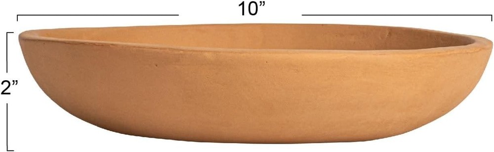 Creative Co-Op Large Orange Terracotta Bowl 2", Natural Product Details Bowl Material: Earthenware Number of Pieces: 1 Brand: Creative Co-Op Color: Natural Terracotta Style: Bowl Shape: Round Capacity: 1050 Milliliters Specific Uses For Product: Dinner Included Components: saucer Pattern: Solid Is Dishwasher Safe: No Is Microwaveable: No Material: Terracotta Product Dimensions: 10"W x 2"H Global Trade Identification Number: 00191009196464 Manufacturer: Creative Co-Op Size: 2" UPC: 191009196464 Item Weight: 1.14 pounds Item model number: DF0794 Batteries required: No This rustic serving bowl features solid terracotta construction in a lightly distressed, matte finish Fill with bread, desserts, or finger foods at a dinner party, or place air plants or small accents inside for a decorative display Food safe; Hand wash only Made from 100% terracotta 10 inches diameter x 2 inches H Creative Co-Op's thoughtfully crafted collection of dinnerware and tableware showcases an expansive selection of natural materials and artisanal silhouettes designed for the modern host. Explore a wide array of pieces that are both fashionable and functional including plates, bowls, mixed material cutlery, appetizer dishes, mugs, and so much more. Choose from a vast selection of materials from reclaimed wood and stainless steel to stoneware and glass, and styles from classic farmhouse and mid-century modern to vintage glam and contemporary boho. Add a touch of beauty and sophistication to a special occasion or daily routines with this carefully curated collection of dining wares that are sure to impress.