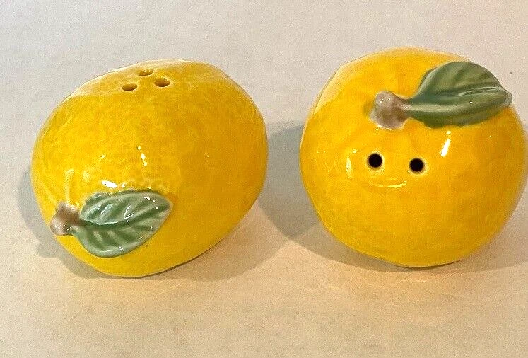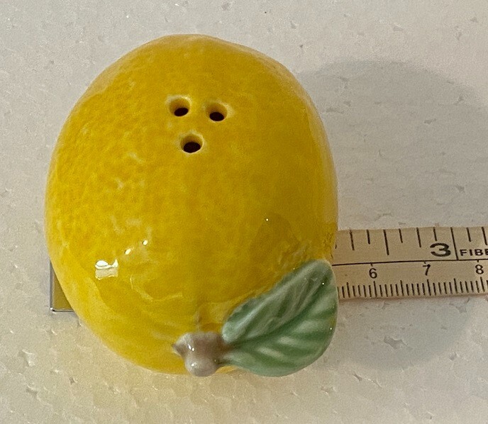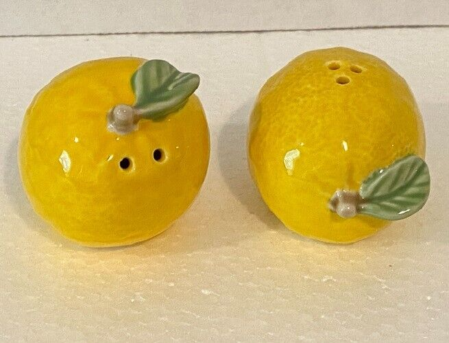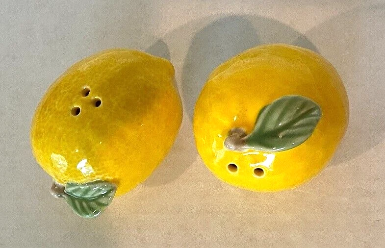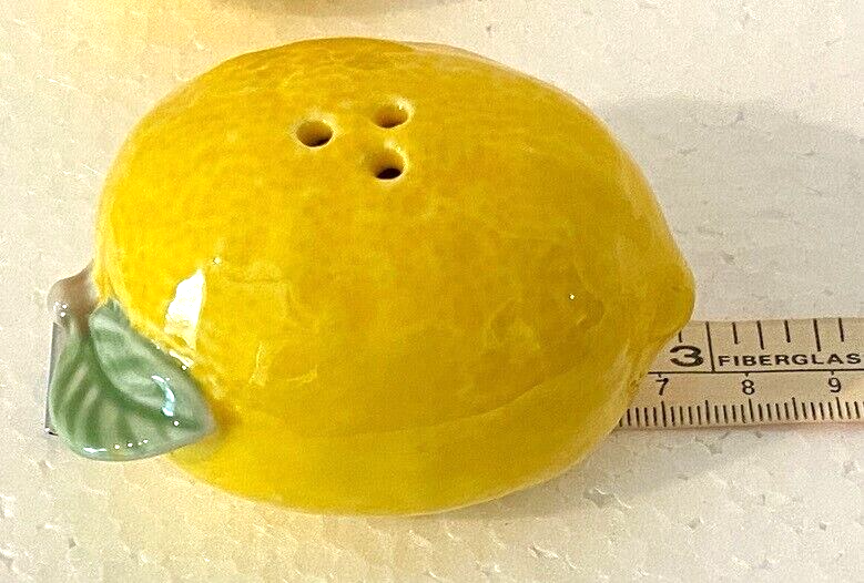 Creative Co-Op Lemon Salt and Pepper Shaker Set Approximate size: 3" x 2 1/4" Made of Stoneware Hand Wash Only Brand new Please look carefully at all pictures and ask any questions before buying as there are NO RETURNS Shipping Discount : When purchasing ANY items in my store, Shipping Discount : When purchasing ANY items in my store, PLEASE do the following: Put each item you want to purchase in your cart by clicking "Add to Cart". When you are finished adding all the items you wish to purchase, click on the Cart at the top of the page. Then click on "Go to Checkout" and the shipping discount will be automatically applied. You are only charged full price shipping on one item in your cart (the one with the highest shipping cost if different kinds of items are purchased) If you have any problems, please let me know. For this particular item, Shi pping cost for first one is $4.95. Any additional items in this listing will have a shipping cost of $1.00 when purchased and paid for in the same order at the same time . This is automatically calculated at check out.