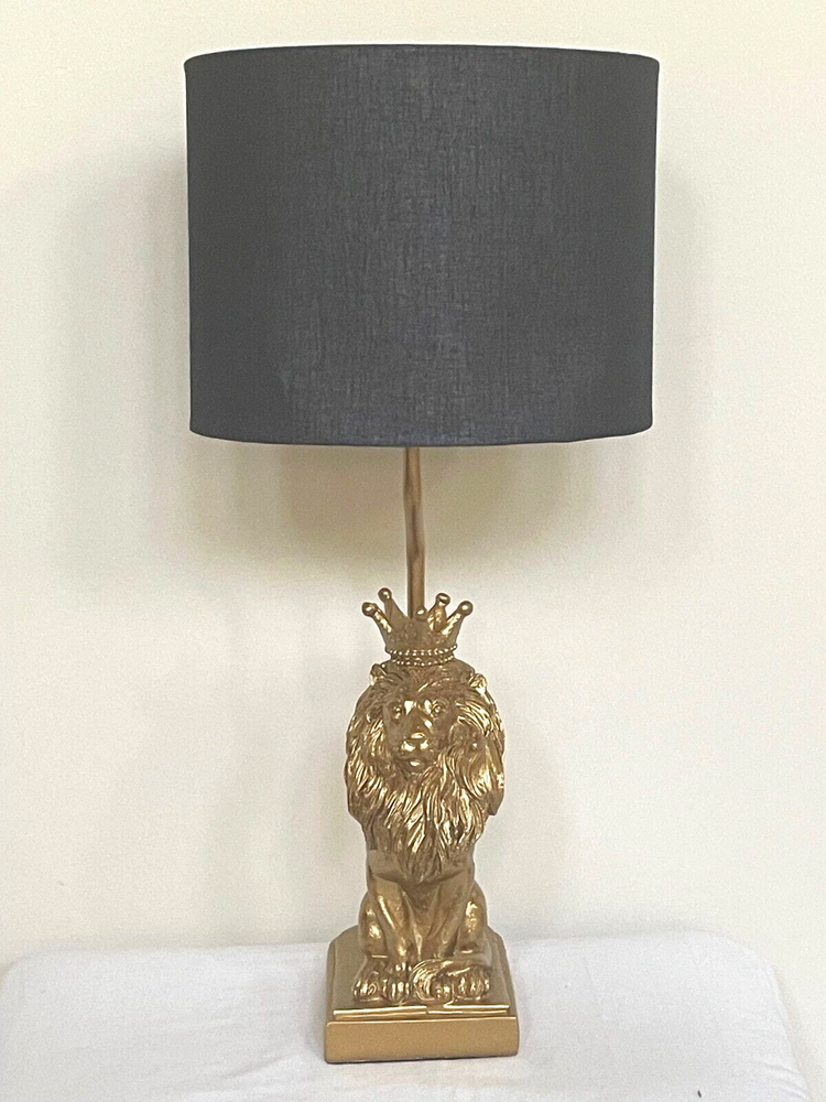 Creative Co-Op Lion Shaped Table Lamp with Black Shade Gold lion-shaped table lamp is perfect small light for a nursery, den, bedroom or office desk This bedside lamp is great for a jungle or safari rustic modern inspired room Table lamp has an inline switch to add convenience and includes a black linen drum shade This table lamp requires maximum 40 W light bulb (not included) Lamp measures 9"L x 9"W x 19.75" H Shipping We offer FREE shipping on all orders! We ship within Three business days of payment, usually sooner. We use a selection of shipping services such as UPS, FedEx, USPS etc. We only ship to the lower 48 states, no APO/FPO addresses or PO Boxes allowed. Local pickups and combined shipping options are not provided at this time. Return You can return a product for up to 30 days from the date you purchased it. Any product you return must be in the same condition you received it and in the original packaging. Please keep the receipt. Payment We accept payment by any of the following methods: PayPal Please pay as soon as possible after winning an auction, as that will allow us to post your item to you sooner! Feedback Customer satisfaction is very important to us. If you have any problem with your order, please contact us and we will do our best to make you satisfied. Contact Us If you have any queries, please contact us via ebay. We usually respond within 24 hours on weekdays. Please visit our eBay store to check out other items for sale! Thank you for shopping at our store.
