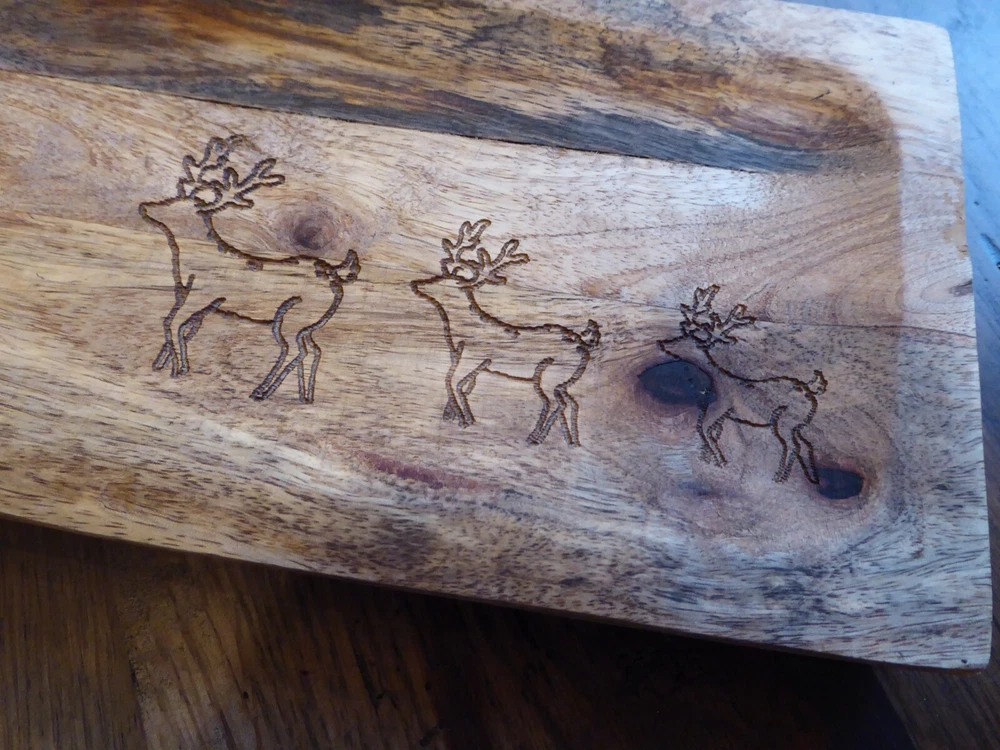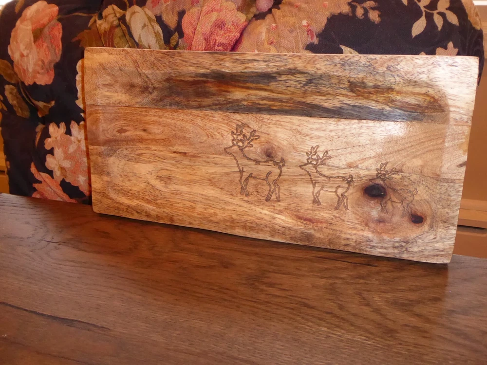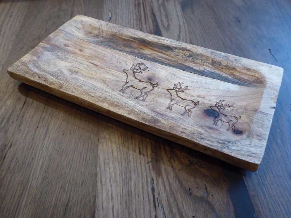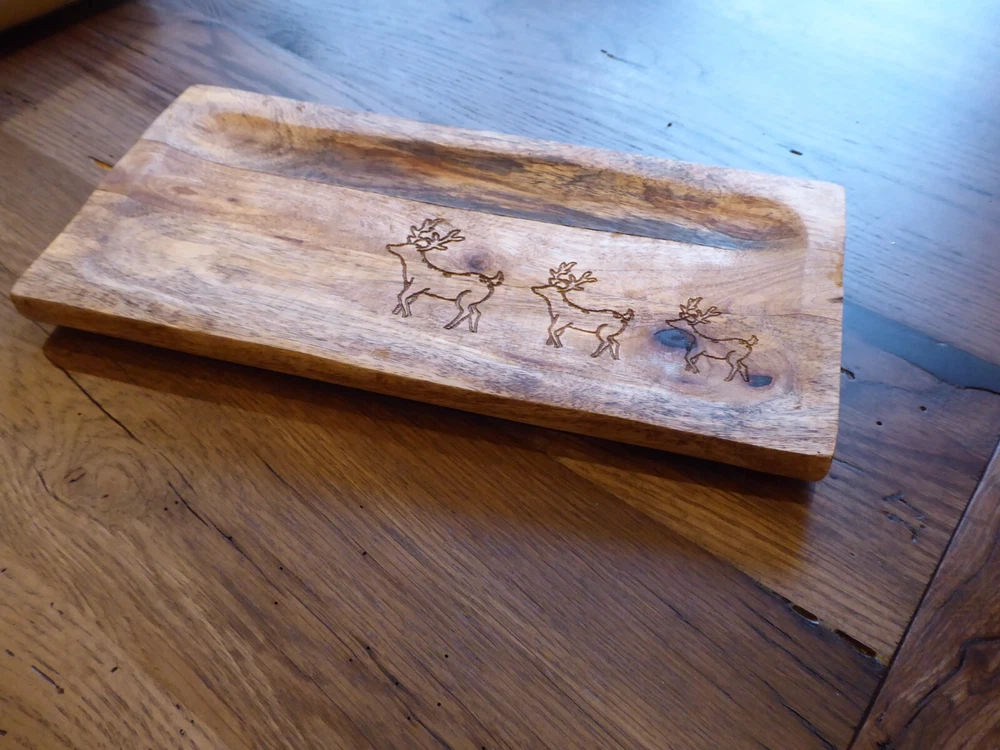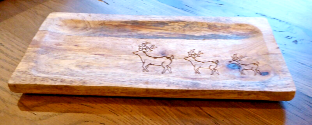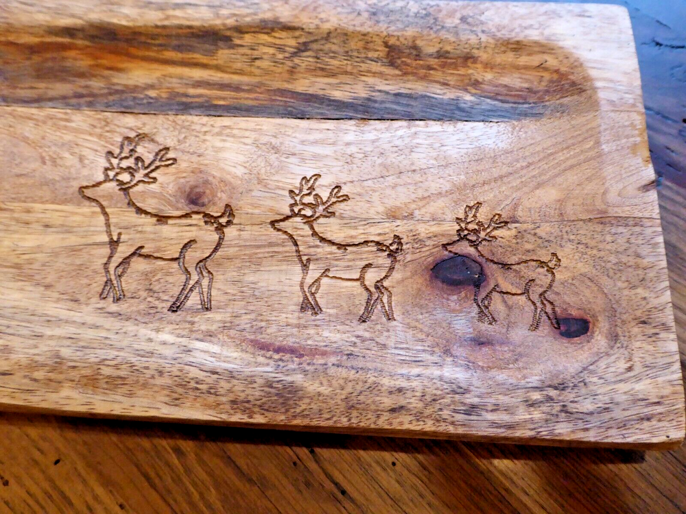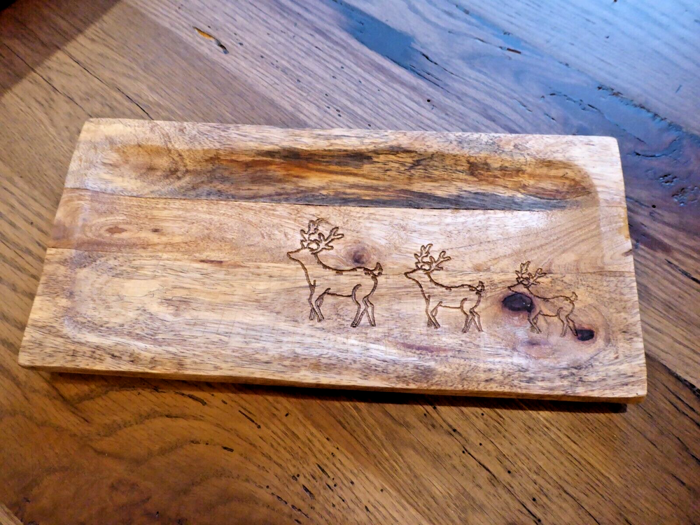 This is for is for a brand new, never used Creative Co-Op Mango Wood Laster Cut Serving Tray with Reindeer deer design. Rectangular shape measuring 11.75" long x 5.75" wide and a tad under 1" tall, item has pads on bottom so it will sit on your table nicely without moving. Made of Mango Wood in the Natural finish. Modern look seasonal serve tray with a whimisical holiday charm. 100% mango wood. Item is brand new, never used. Hand wash only, no dishwasher or microwave. Made in India. Item #: XM9581 UPC code: 191009469902 NOTE: We ship all items within one business day of receiving payment so you can receive them as quickly as possible. In order to keep shipping costs affordable, seller will choose the best shipping method, which could be USPS priority mail or UPS or FedEx ground depending on the items, their package dimensions and weight. Please see all photos and ask questions if needed. Smoke and Pet Free Environment. Please note the following policies: We will not ship items to third parties, this includes freight forwarders. If you are an overseas buyer and want to purchase an item from us, please use eBay's International Shipping program. We must ship to US verified addresses only and to the person who made the purchase here on Ebay. If you see free shipping as a ship method, it is just that, free, but within the United States only. With free shipping, seller chooses shipping method. If you desire a faster shipping method, please contact us so that we may calculate the fast shipping method prices for you. FREE shipping is for standard ground shipping only. We choose the shipping method. If you want another type of shipping, for example, super fast shipping, then you must contact us prior to making a purchase so that we can calculate the shipping charges for you. Free shipping does not include faster service. We process our packages fast, and we ship fast, (usually within two to three business days of your confirmed and cleared payment), but if you desire anything outside of that you must contact us first to see if we are able to comply and tell you what the extra charge will be. Feel free to reach out any time should you have any questions. Items are from smoke and pet free environment.