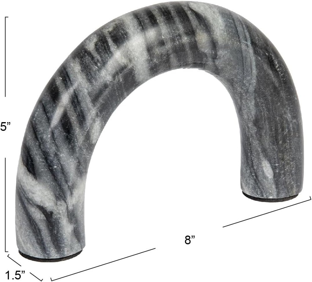 Creative Co-Op Marble Arch Accent Decor, Grey Gray Product Details Package Dimensions: 10.75 x 9.06 x 3.07 inches Item Weight: 3.76 pounds Department: Home Manufacturer: Creative Co-Op Country of Origin: India Item model number: EC1457 Care instructions: Wipe with Dry Cloth Assembly required: No Number of shelves: 1 Batteries required: No Included Components: Accent Decor This strikingly modern accent piece showcases naturally variating marble construction in an elegant arch silhouette Display on a mantel, console table, shelf, or dresser in a room of any style from Scandinavian to Boho Please note that each dish is meticulously hand-carved using naturally variating marble; Every piece will vary slightly in color and grain Made from 100% naturally variating marble Arch measures 8 inches L x 5 inches H; Marble is 1.5 inches in diameter This beautiful marble accent seamlessly combines natural beauty with modern design. With its versatile arched silhouette, this piece is a perfect addition to any living space whether placed on a mantel, console table, shelf, or dresser. This stunning accent is crafted from 100% natural marble, ensuring its timeless beauty and durability. Please note that each arch is meticulously crafted using naturally variating marble, making every piece a one-of-a-kind masterpiece with its own unique color and grain. Measuring 8 inches L x 5 inches H, with a diameter of 1.5 inches, this tabletop shelf decor is the perfect size for a variety of uses. Whether you're looking to display it as a standalone piece or use it to showcase other decorative items, it is sure to draw the eye and elevate any interior design scheme.