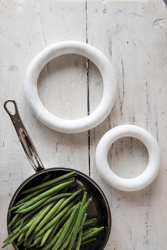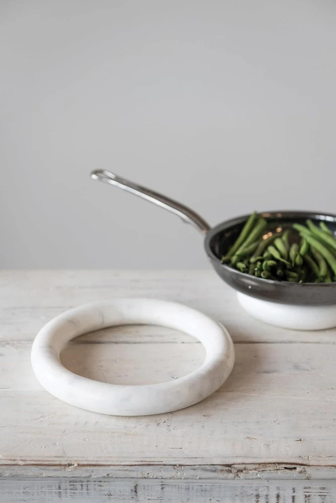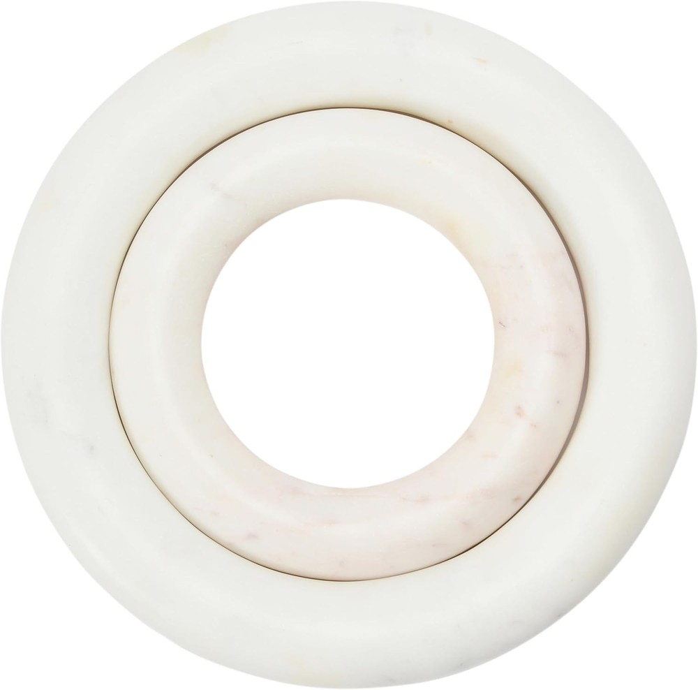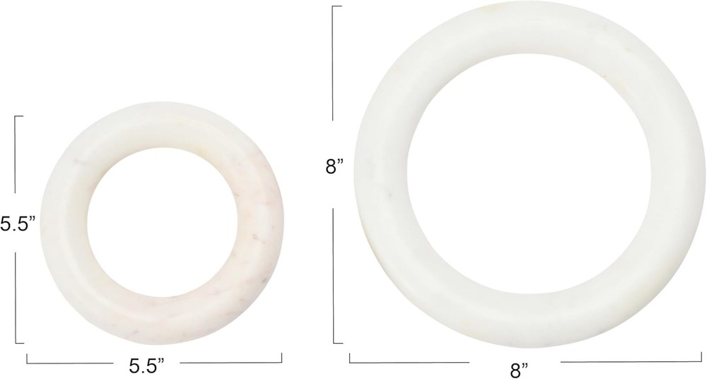 Creative Co-Op Marble Trivets for Dining Table, Set of 2, 8" round, White Product Details Material: Marble Color: White Brand: Creative Co-Op Product Dimensions: 8"L x 8"W x 1"Th Shape: Round Product Care Instructions: Spot Clean Manufacturer: Creative Co-Op UPC: 191009429562 Global Trade Identification Number: 00191009429562 Item Weight: 1.98 pounds Item model number: DF5013 Create better functionality for your kitchen setup and enhance its sense of style with these marble trivet decor; it will serve as a wonderful kitchen decor or dining table decor when not in use These gorgeous potholders have been handcrafted with the best quality marble; this set of two kitchen trivets comes in a white color and a classic ring shaped design in two different sizes You can easily place hot dishes on these without worrying about the table or bothering about any other piece of furniture; these trivets will look gorgeous in a contemporary setting Place these kitchen accessories on your dining table to instantly elevate the look of your dining area, adding a classic touch to it; it will also serve as a great housewarming gift Measuring 8" round and 5.5" round, these table centerpieces allow your hands to remain perfectly protected Let your kitchen area get some gorgeous appeal as you add these heat protectant kitchen essentials. These white trivets are made up of marble for a durable and sturdy construction. There are two different sizes to choose from, so you can choose as per your dish requirements. These trivets will come in handy while keeping hot dishes on the table. Their unique construction gives them a classy appeal, making them a wonderful housewarming gift. When these are not in use, you can place them across the table in a stylish manner to add more beauty to your dining space. Measuring 8" round and 5.5" round, these table centerpieces allow your hands to remain perfectly protected.