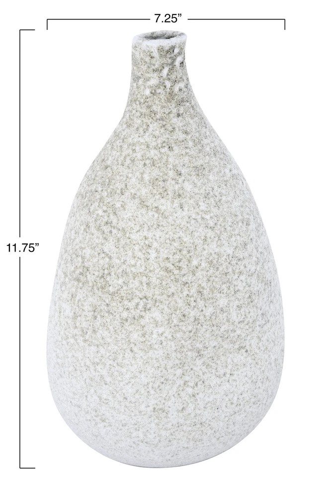 Creative Co-Op Medium Textured Terracotta Vase with Narrow Top & Distressed Finish Product Details Size: 11.75" Brand: Creative Co-Op MPN: DF2992 UPC: 191009304081 EAN: 0191009304081 Material: Earthenware Color: Cream Brand: Creative Co-Op Product Dimensions: 7.25"L x 7.3"W x 11.75"H Shape: Round Material: Earthenware Color: Cream Brand: Creative Co-Op Product Dimensions: 7.25"L x 7.3"W x 11.75"H Shape: Round Style: Unique Special Feature: Distressed Finish Pattern: Solid Theme: Botanical Recommended Uses For Product: Decorative Room Type: Living Room Finish Type: Distressed Number of Pieces: 1 Occasion: Women, Mother's Day, Wedding, Graduation Installation Type: Decorative UPC: 191009304081 Global Trade Identification Number: 81 Manufacturer: Creative Co-Op Item Weight: 6.49 pounds Country of Origin: China Item model number: DF2992 Finish types: Distressed Assembly required: No Warranty Description: None. Batteries required: No Included Components: Vase This unique vase will make a great decorative accent without the addition of botanicals Narrow opening will gently hold your delicate flowers Hang a decorative tassel around the neck for added color 7.25"L x 7.25"W x 11.75"H An irregular shape is the main feature of this terracotta vase. Alone, it is a perfect addition to a shelf or mantel. For a little extra color, fill with a few dried botanicals and display proudly on a tabletop or counter.