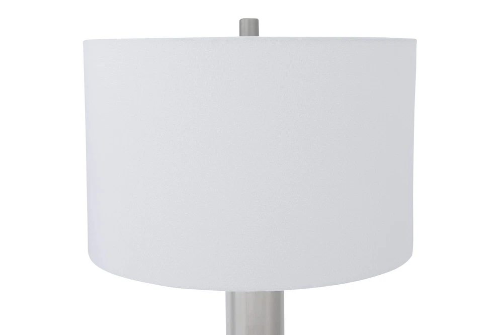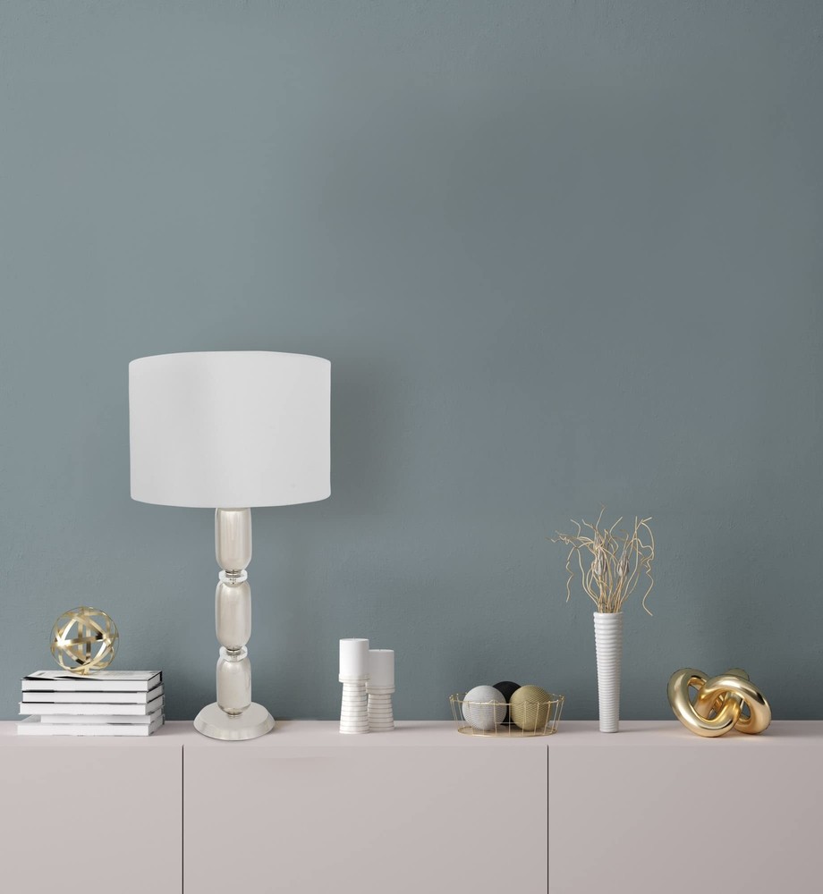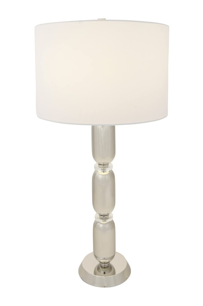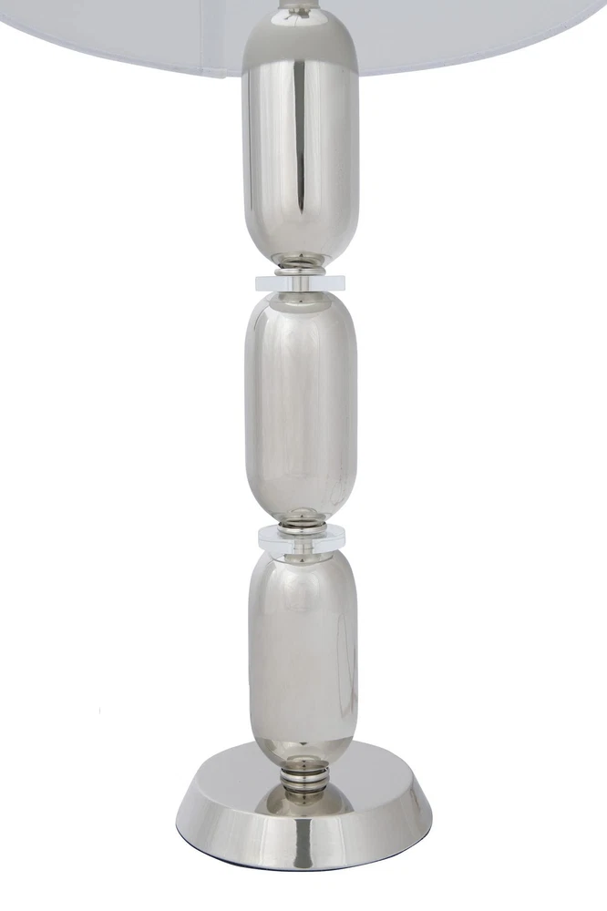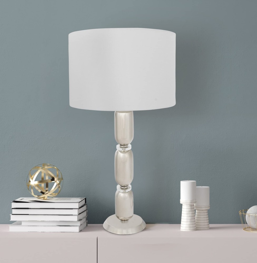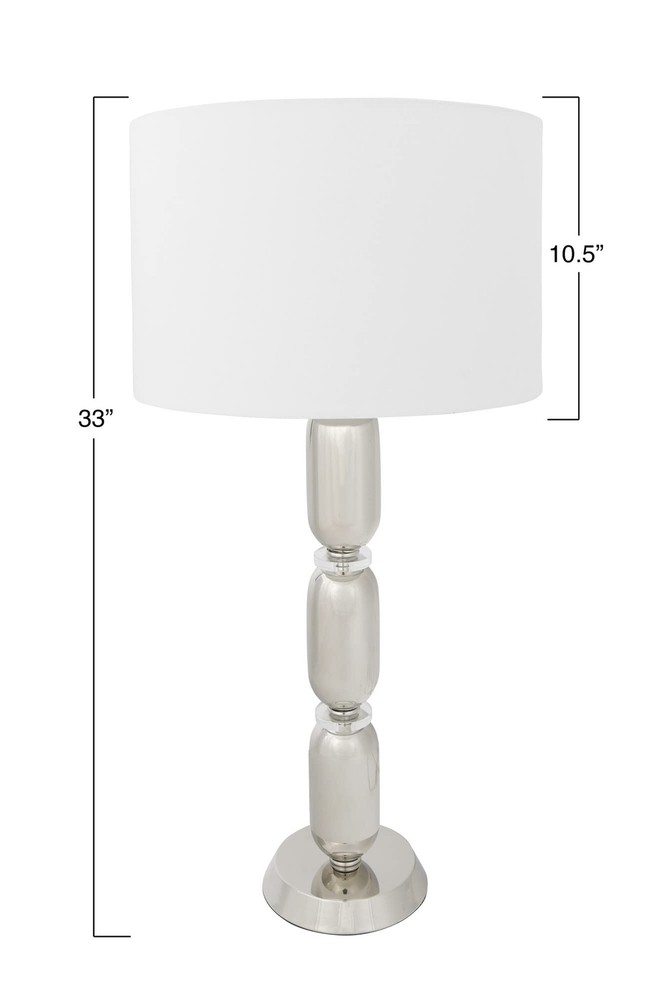Creative Co-Op Metal Glass Middle Table Lamp, Silver Product Details Finish Type: Brushed Base Material: Metal Product Dimensions: 16"D x 16"W x 32.75"H Item Weight: 5 Pounds Lamp Type: Table Lamp Finish Type: Brushed Base Material: Metal Product Dimensions: 16"D x 16"W x 32.75"H Item Weight: 5 Pounds Lamp Type: Table Lamp Shade Color: white Shade Material: glass,linen,metal Style: Modern Brand: Creative Co-Op Color: Silver Material: Glass, Metal Room Type: Bedroom Recommended Uses For Product: Table Lamps Shape: Drum Number of Light Sources: 1 Connectivity Technology: USB Included Components: Bulb Is Waterproof: False Mounting Type: Tabletop Number of Items: 1 Installation Type: Tabletop Number of Pieces: 1 Voltage: 5 Volts (DC) Base Diameter: 16 Inches Is Cordless?: No UPC: 191009336686 Manufacturer: Creative Co-Op Item Weight: 5 pounds Country of Origin: China Item model number: EC0341 Finish types: Brushed Assembly required: No Warranty Description: None. Batteries required: No Smooth metal stacked column base with glass disc dividers Slick silver hue White linen drum shade 33 inches in height Bulb not included The Margaux collection is designed to admire the modern European style, observing its simple elegance. The smooth stacked columns are perceived throughout the base, fashioning a modern sensation to a classic design. The brushed gold, vintage pewter, and slick silver, truly capture the inspired European elements of the modern day.