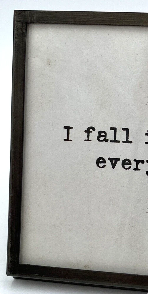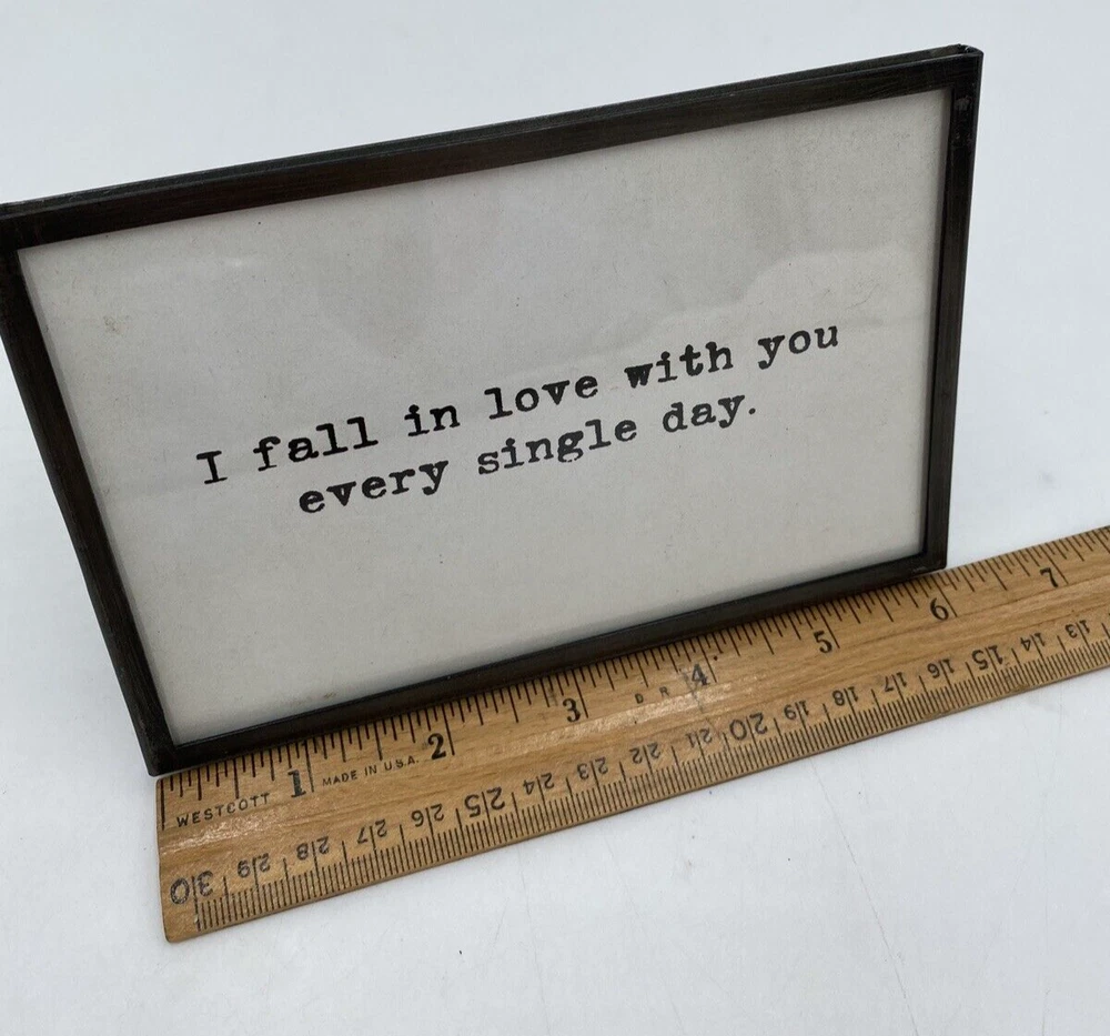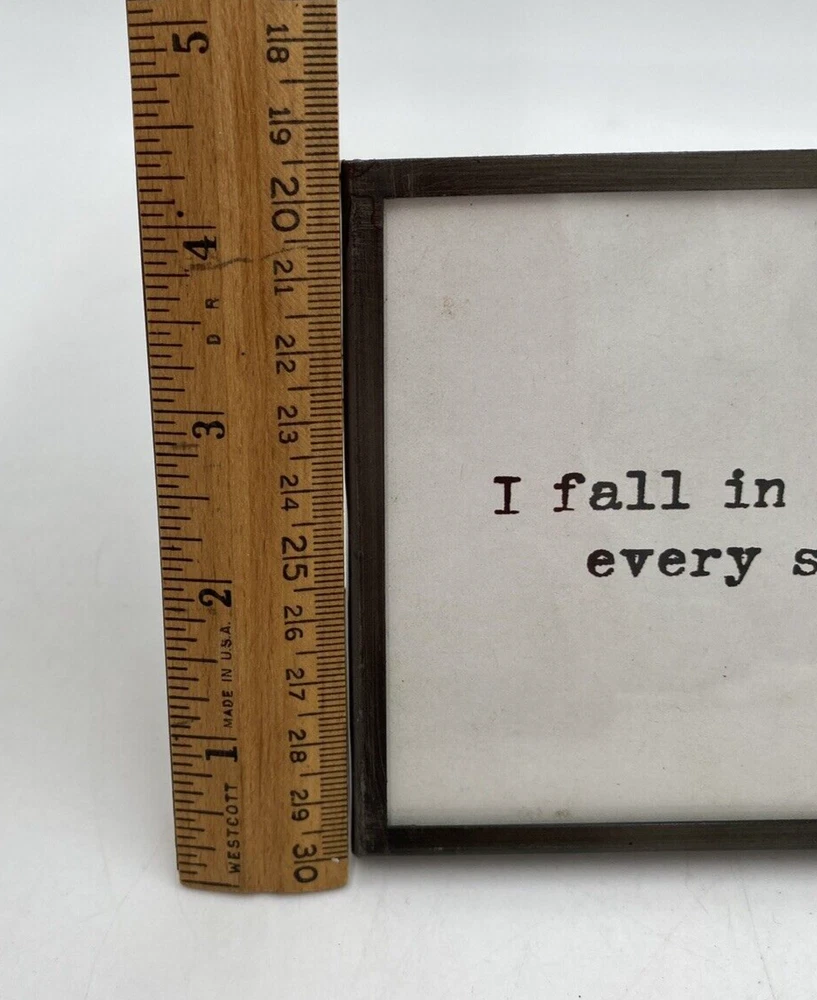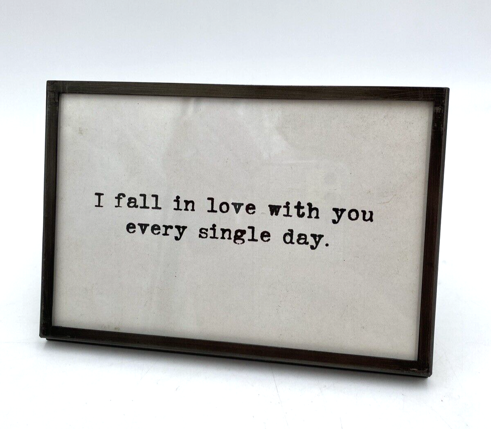 This adorable metal and glass photo frame is perfect for adding a sweet touch to any space! The "Fall in Love Every Single Day" saying adds charm, and the 6x4" size is ideal for small photos or notes. There are a few minor dust spots near the text, but they’re barely noticeable. Love that you can easily swap out the included saying for your own picture or message—great versatility! The frame feels sturdy and well-made. A lovely little piece for gifting or keeping!