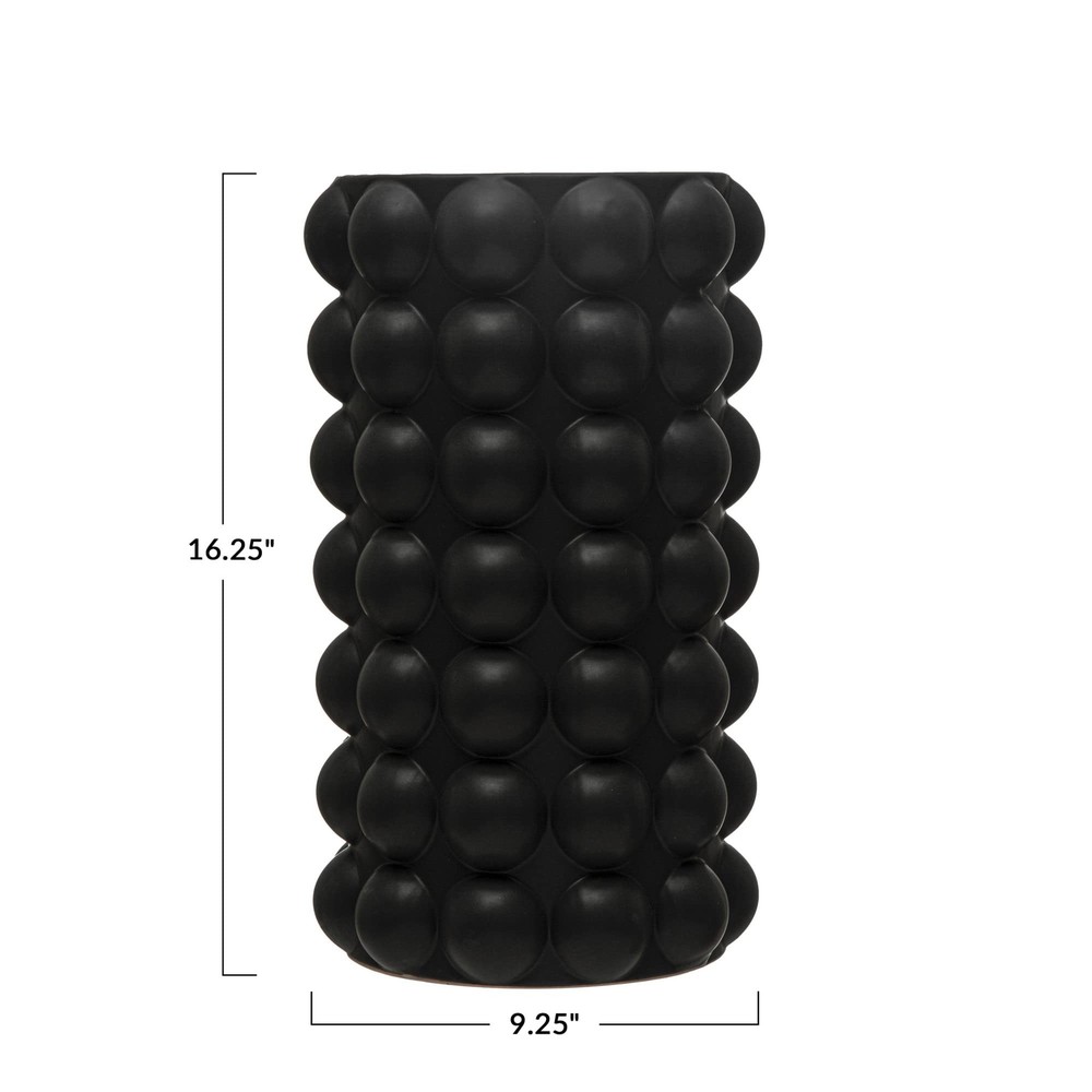 Creative Co-Op Modern Stoneware Raised Dot Vase or Umbrella Holder, Black Product Details Material: Stoneware Color: Black Brand: Creative Co-Op Product Dimensions: 9.25"L x 9.25"W x 16.25"H Shape: Cylindrical,Figurine,Modern Material: Stoneware Color: Black Brand: Creative Co-Op Product Dimensions: 9.25"L x 9.25"W x 16.25"H Shape: Cylindrical,Figurine,Modern Style: Modern Special Feature: Wide Mouth Pattern: Solid Theme: Flowers Recommended Uses For Product: Decorative Room Type: Bathroom, Living Room, Bedroom Number of Pieces: 1 Occasion: Women, Mother's Day, Wedding, Graduation Item Weight: 10.2 Pounds Installation Type: Table Top UPC: 191009541288 Manufacturer: Creative Co-Op Item Weight: 10.15 pounds Country of Origin: China Item model number: DF7181 Assembly required: No Warranty Description: None. Batteries required: No Included Components: Vase This contemporary vase showcases a cylindrical stoneware silhouette with a bold hobnail design Display in a living space of any style from modern to eclectic Fill with dried seasonal flora, decorative branches, or simply display as a standalone accent Made from stoneware 9.25 inches L x 9.25 inches W x 16.25 inches H Our thoughtfully curated collection of vases showcases a wide array of silhouettes, textures, and hues designed to showcases seasonal flora, dried botanicals, faux fronds, or delicate blooms. Explore a vast selection of sizes, styles, and functions for the perfect artful accent, including decorative bottles, sculptural vessels, sets of bud vases, combination vase/candleholders, figurine vases, oversized urns, etched hurricanes, hand- blown glass statement-pieces, and so much more. Choose from a wide range of materials from stoneware and ceramic to etched mercury glass and reclaimed wood, and styles from mid-century modern and classic farmhouse to vintage glam and boho. Showcase freshly cut flower arrangements or dried flora inside pieces from this artfully crafted collection, or display alone as stylish statements.