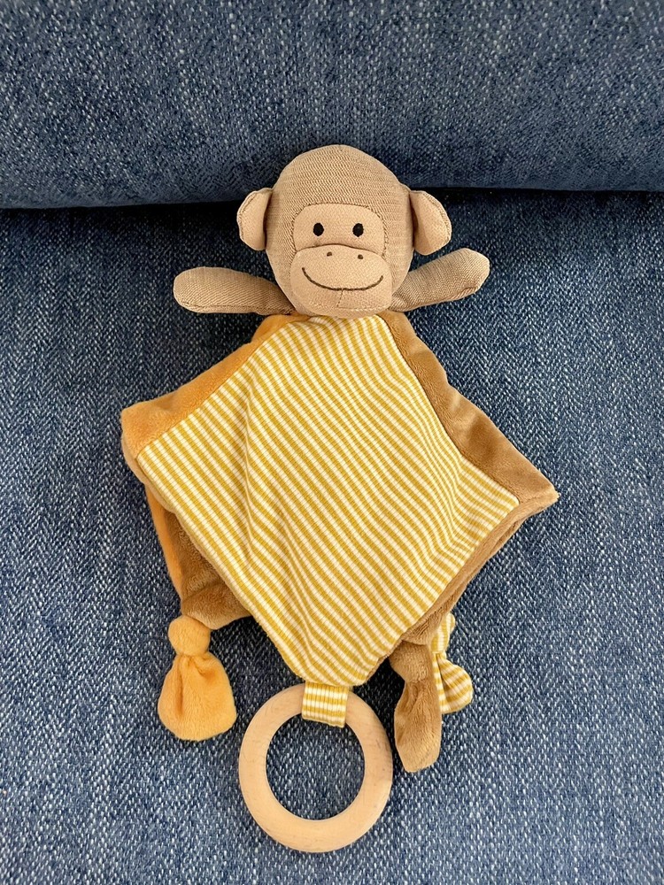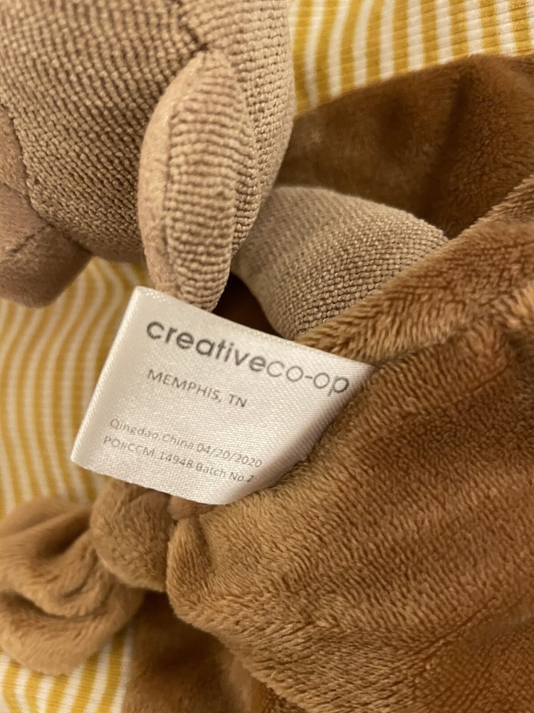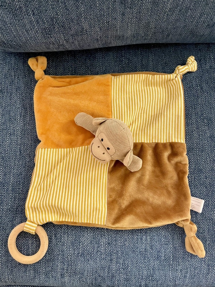 This Creative Co-Op Monkey Lovey Security Blanket is the perfect addition to your little one's nursery. The blanket measures 11.5" X 11.5" and comes in a beautiful tan color. Made of 100% polyester fiber, it is soft and easy to care for. Featuring an adorable monkey design with embroidered details, this security blanket is perfect for any little monkey lover. It is unisex and can be used as a blanket or as a teething ring. The Creative Co-Op Monkey Lovey Security Blanket is a must-have for any baby's nursery. Free shipping