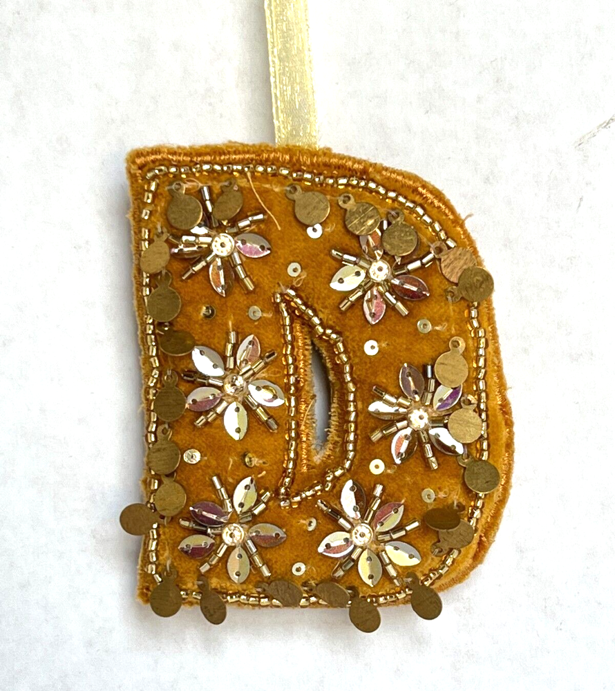 Creative Co-Op Monogram Initial Ornament Letter "D" (See below for Shipping Discount when purchasing Multiple Items from my Store) This listing is for ONE Monogram Initial Ornament Letter Approximate size is 3 1/2" x 3"....see pictures...each letter of the alphabet will vary in size Last picture shows all letters available in my store Category "Initial Letter Alphabet Items" Made of Velvet embellished with beads and sequins Back side is solid velvet with no embellishment. Brand New Please look carefully at all pictures and ask any questions before buying as there are NO RETURNS Shipping Discount : When purchasing ANY items in my store, PLEASE do the following: Put each item you want to purchase in your cart by clicking "Add to Cart". When you are finished adding all the items you wish to purchase, click on the Cart at the top of the page. Then click on "Go to Checkout" and the shipping discount will be automatically applied. You are only charged full price shipping on one item in your cart (the one with the highest shipping cost if different kinds of items are purchased) If you have any problems, please let me know. For this particular item, Shipping cost for first one is $4.25. Any additional items in this listing will have a shipping cost of $0.50 when purchased and paid for in the same order at the same time . This is automatically calculated at check out.