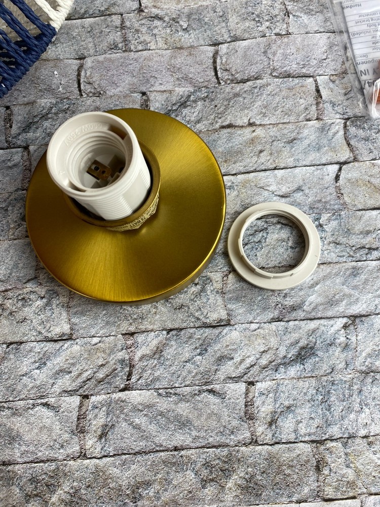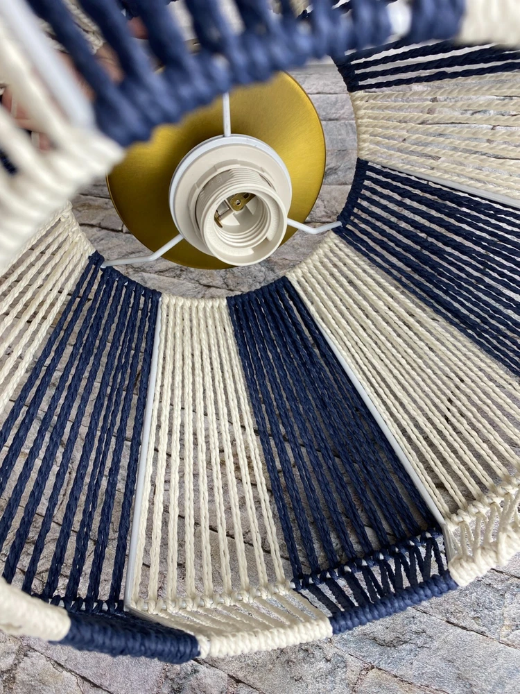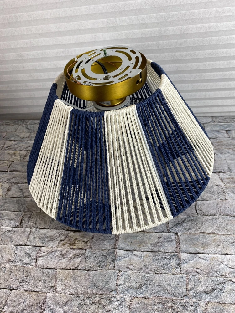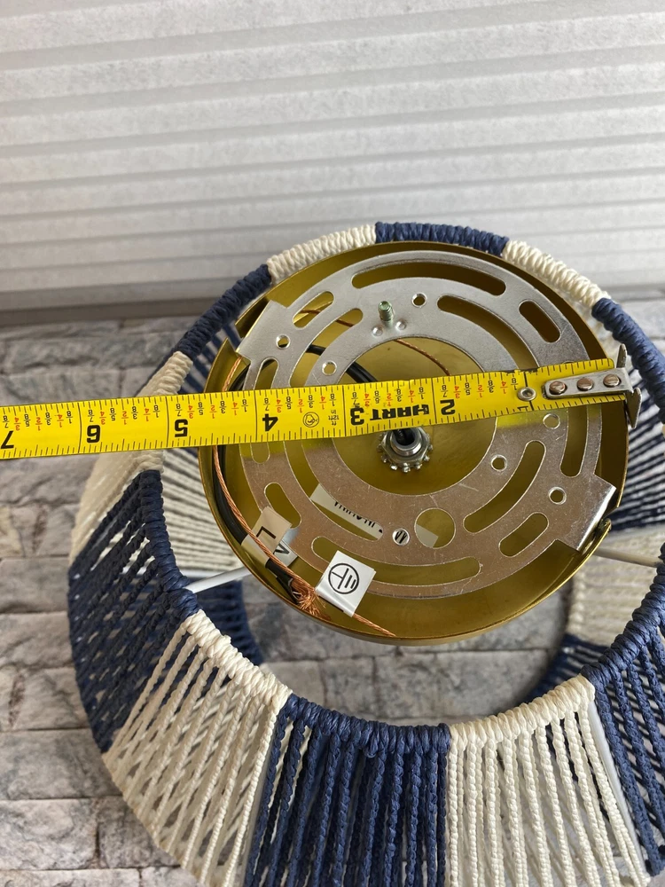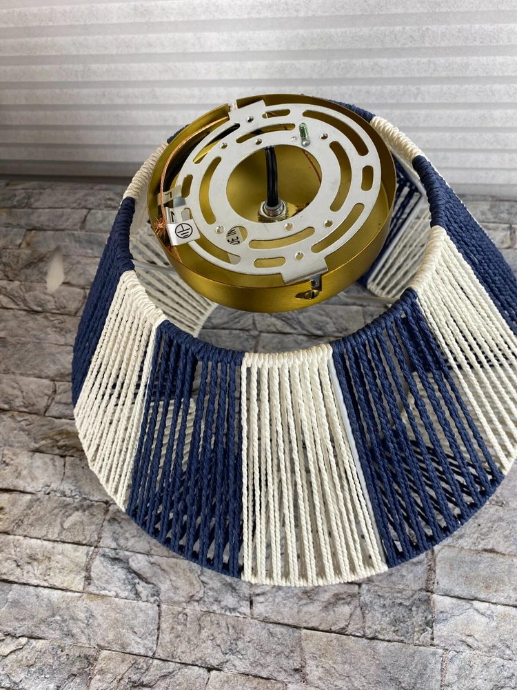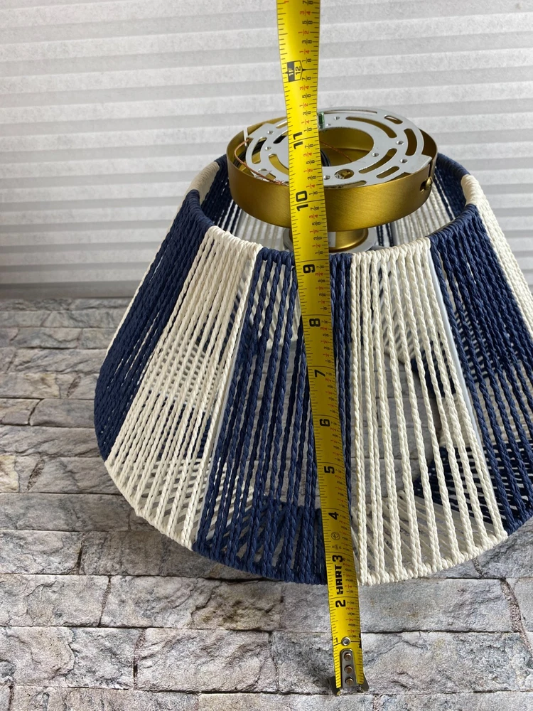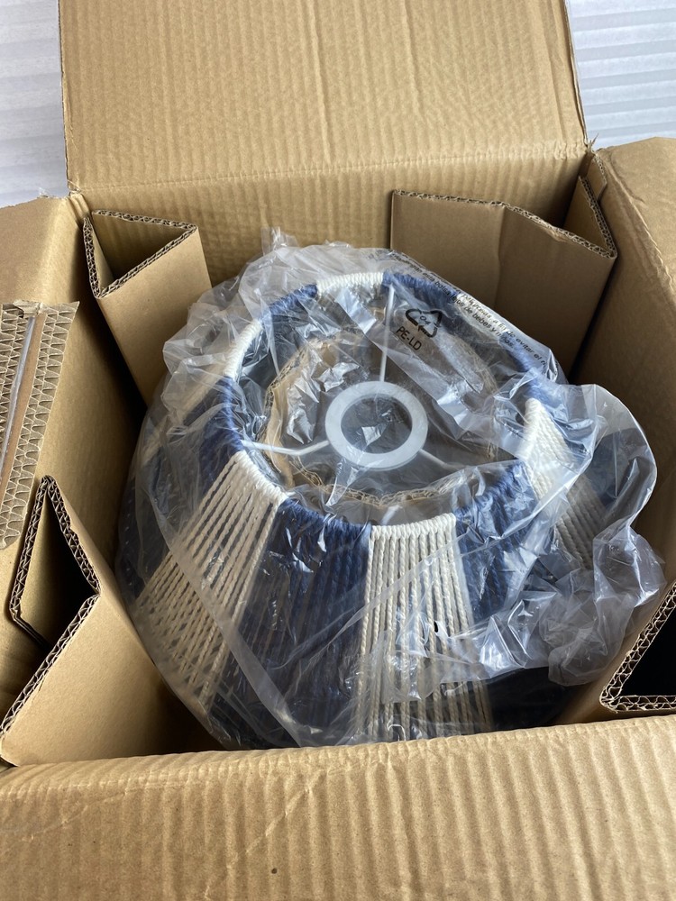 Creative Co-Op Mount Ceiling Woven Paper Rope Shade Navy & White Semi-Flush New open box, must be hard wired. Please see pics for details. See pics for details and measurements. I ship within 1 business day of receiving your order.