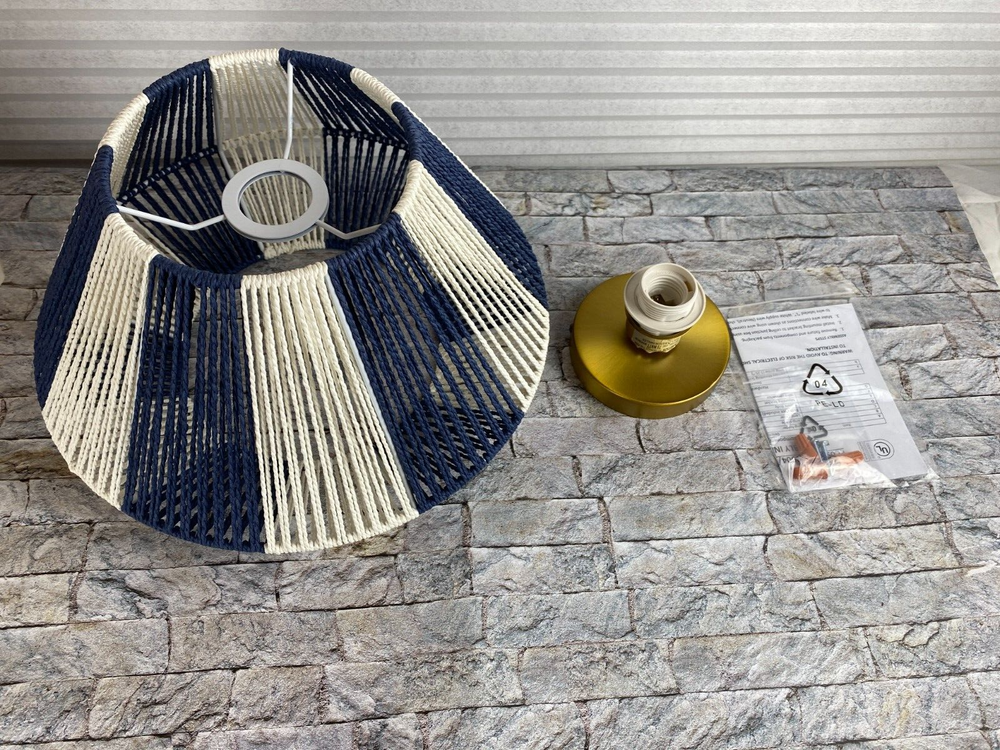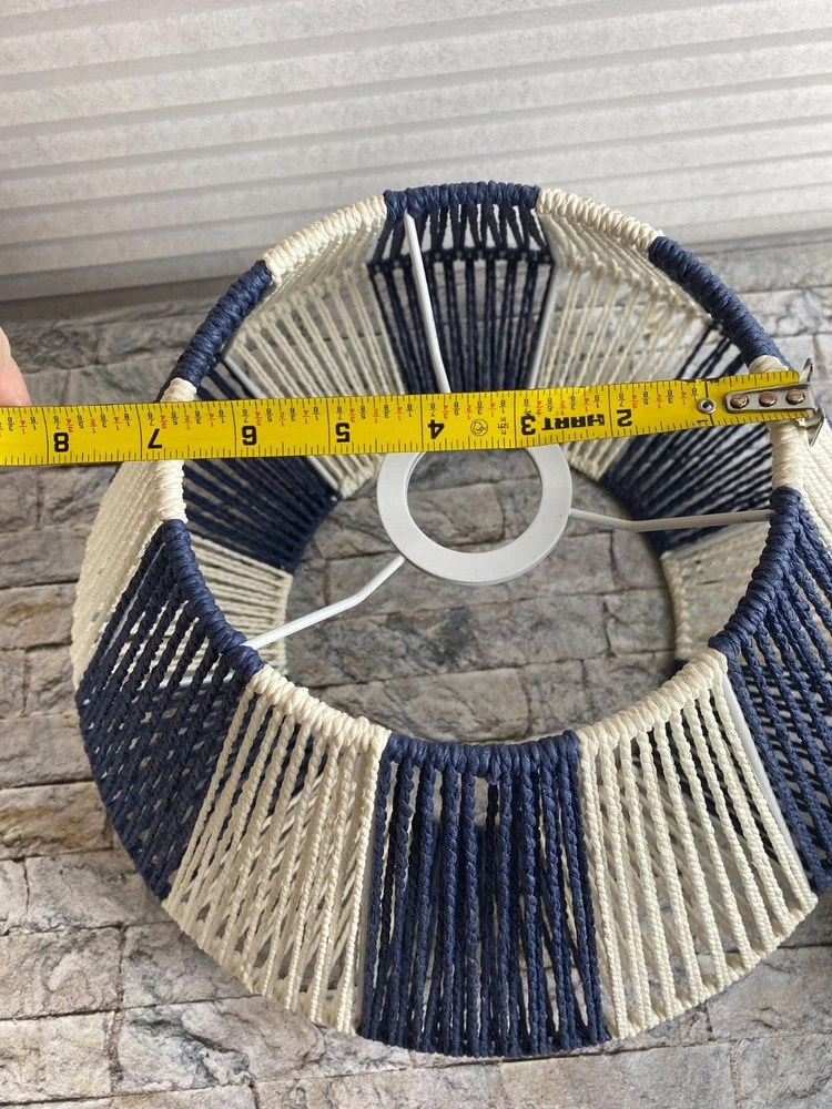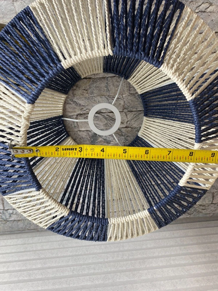 Creative Co-Op Mount Ceiling Woven Paper Rope Shade Navy & White Semi-Flush New open box, must be hard wired. Please see pics for details. See pics for details and measurements. I ship within 1 busine...