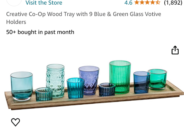 Creative Co-Op Natural Wood Tray with 9 Unique Glass Votive Candle Holders,...