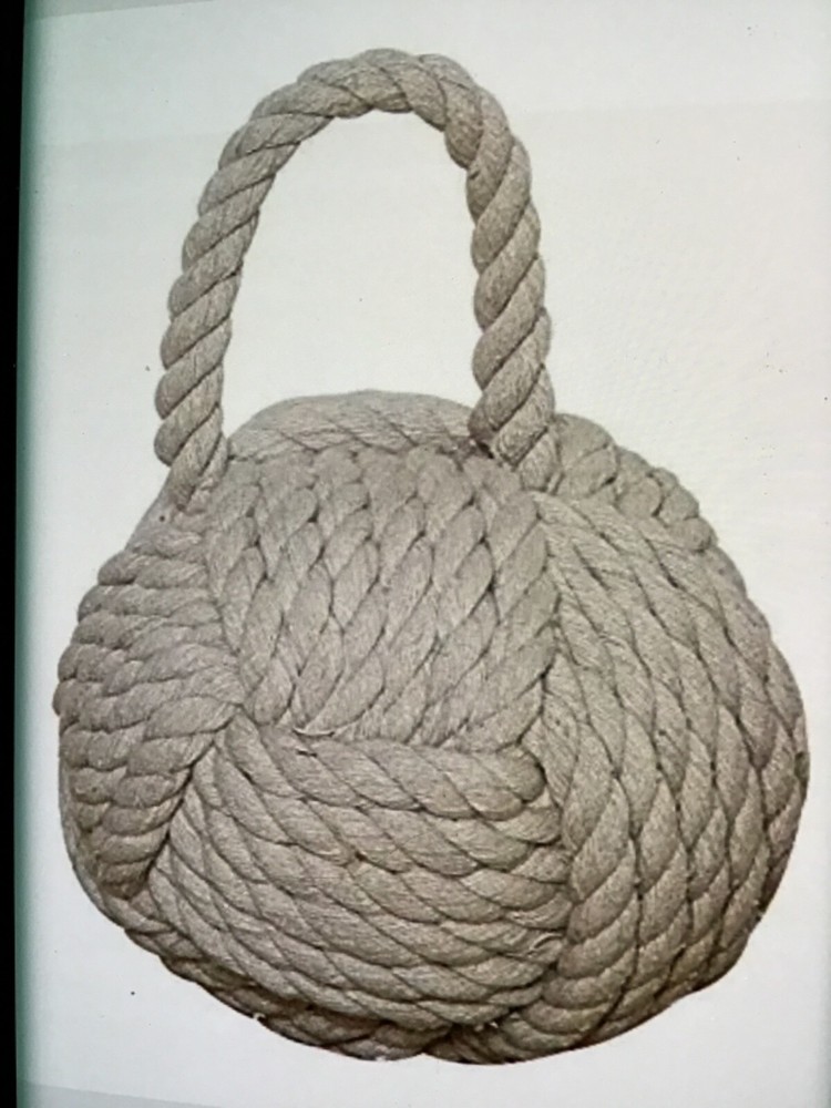 3M Creative Co-Op Nautical Rope Knot Cotton Door Stop Ivory. Rope construction Door stop is weighted and suitable for residential use only; Will support traditionally hinged doors without springs or additional reinforcements Easy grab handle Great for the home or classroom 6. 25"L x 6. 25"W x 6. 25"H 4. 5 pounds Mounting type: wedge Keep your door open with this rope door stop. It is 6.25 in. high with a handle that makes it easy to move for your convenience. The knot design with off-white rope is the perfect choice to create character in even the small areas of your home.