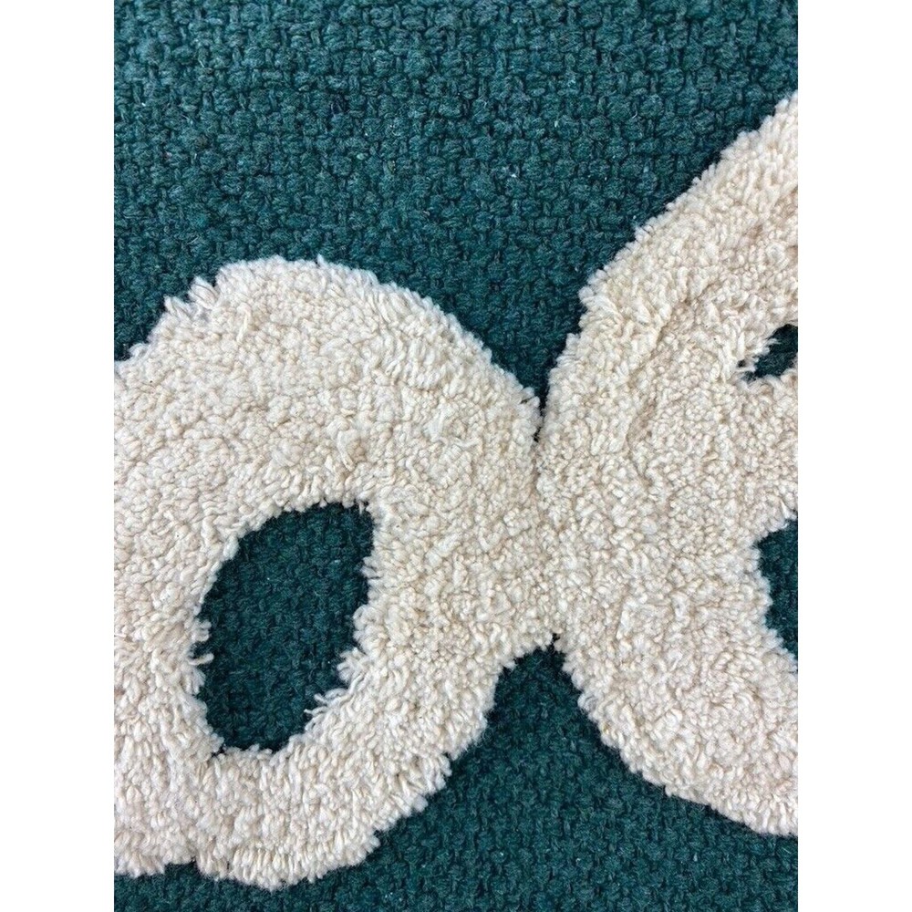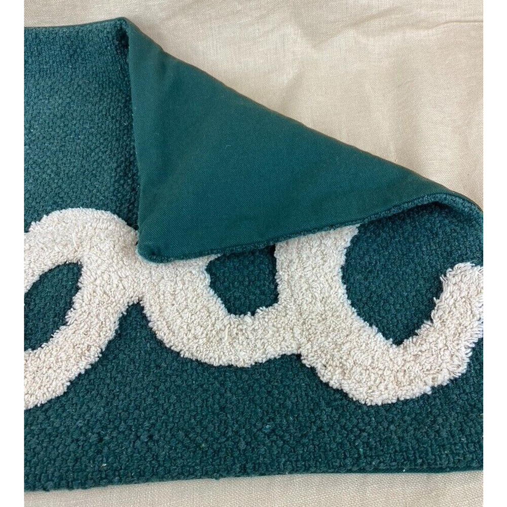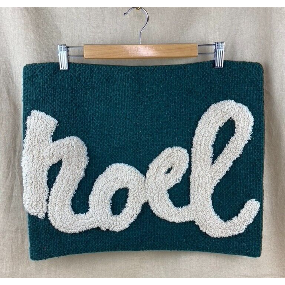 <![CDATA[<div>Chenille NOEL in script written on a roughly woven cotton blend green yarn. 20" x 16" with zippered back. Please contact me with any questions and thanks for stopping by.