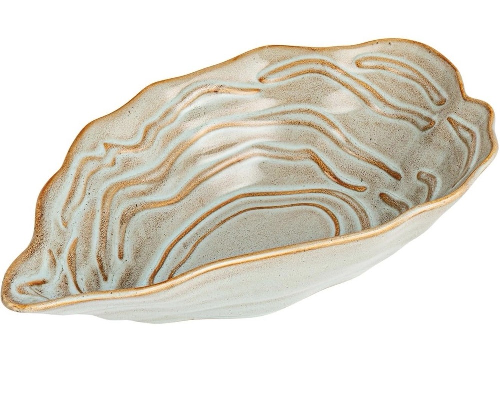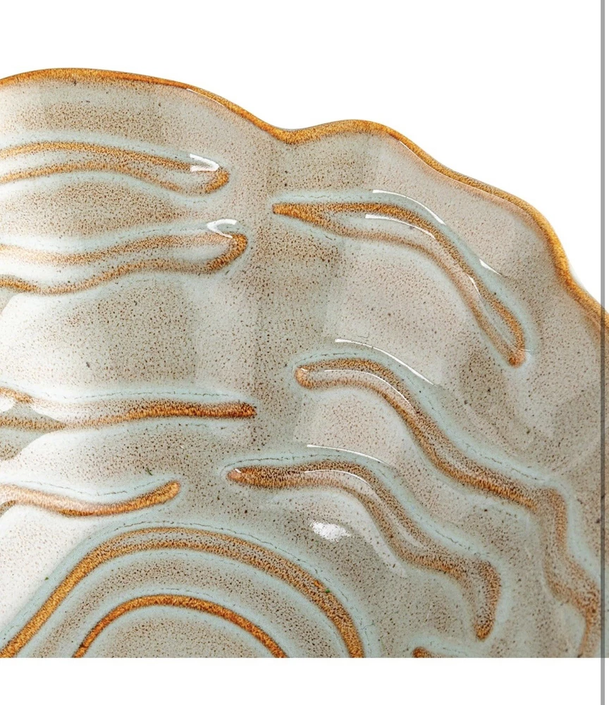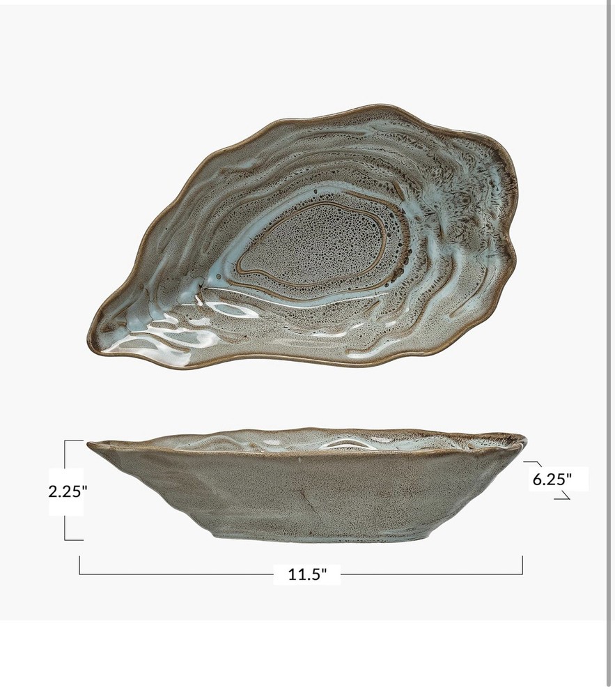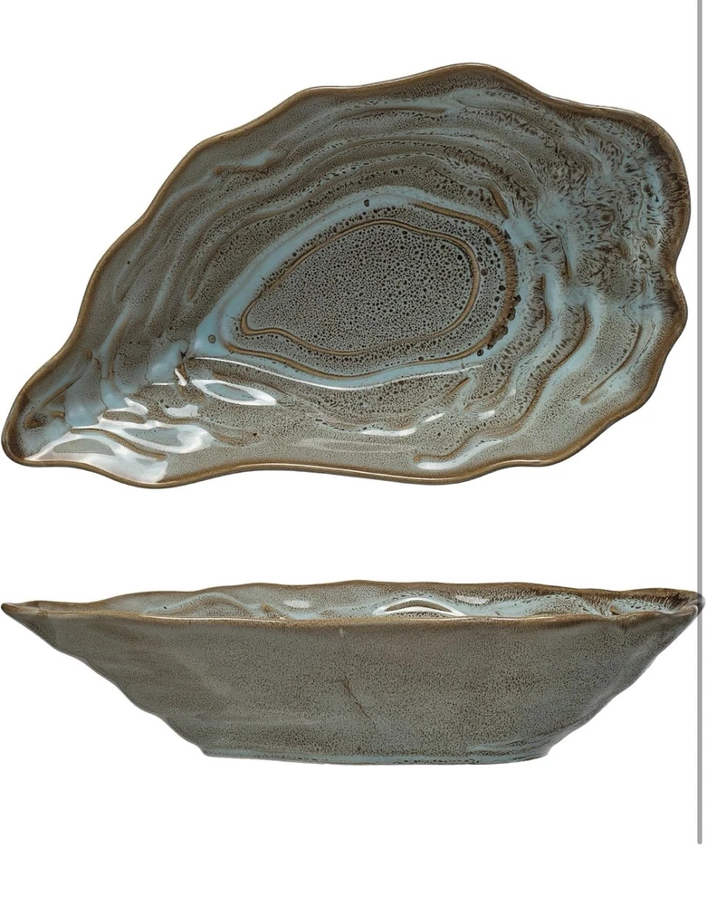 This beautiful oyster-shaped stoneware bowl is a stylish and unique addition to my kitchen! The rich blue color and natural texture make it perfect for serving snacks, dips, or even as a decorative piece. The stoneware feels sturdy and well-made, and the design is so elegant—it gets compliments every time I use it. Highly recommend for anyone who loves coastal or organic-inspired decor!