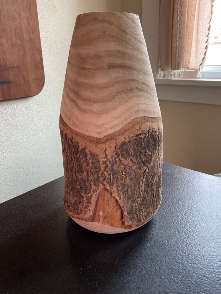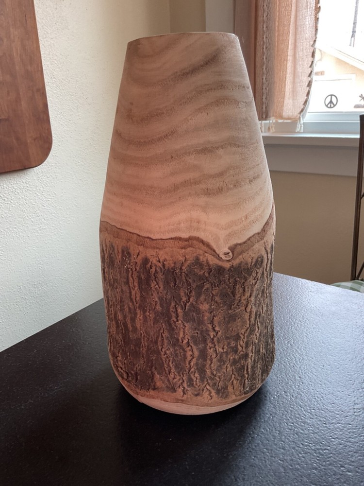 Creative Co-Op Paulownia Wood Vase With Live Edge. Memphis, TN. This vase stands 13 inches tall. Great for rustic decor. Very nice condition....