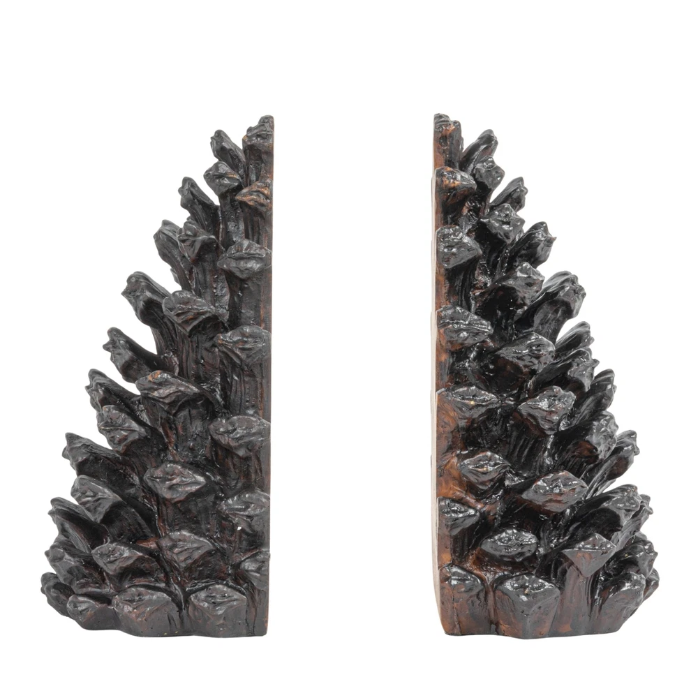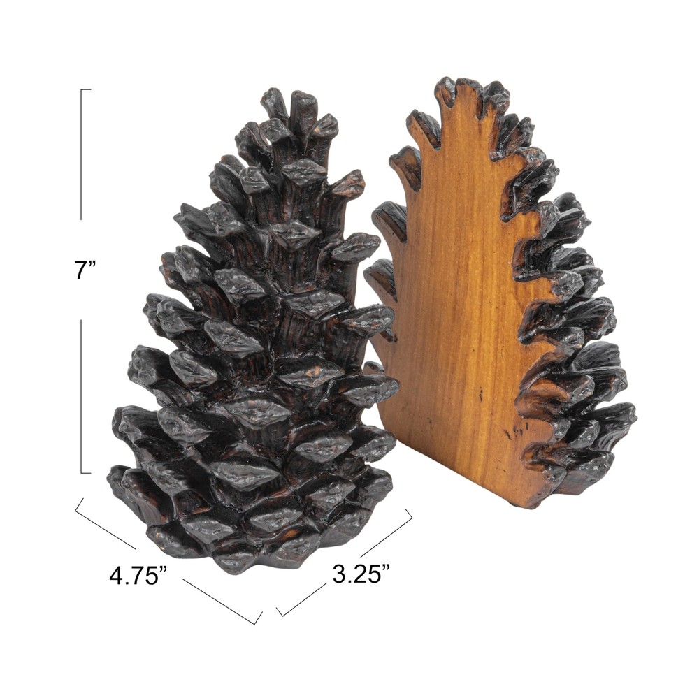Creative Co-Op Pinecone Shaped Resin Bookends (Set of 2 Pieces) Product Details Color: Bronze Brand: Creative Co-Op MPN: DE0651 UPC: 807472302256 EAN: 0807472302256 Material: Resin Product Dimensions: 3.5"D x 4.75"W x 7"H Color: Bronze Finish Type: Bronze Brand: Creative Co-Op Number of Pieces: 2 Global Trade Identification Number: 56 UPC Manufacturer: Creative Co-Op Material: Resin Product Dimensions: 3.5"D x 4.75"W x 7"H Color: Bronze Finish Type: Bronze Brand: Creative Co-Op Number of Pieces: 2 Global Trade Identification Number: 56 UPC: 783329936761 807472302256 Manufacturer: Creative Co-Op Item Weight: 5.95 pounds Country of Origin: China Item model number: DE0651 Is Discontinued By Manufacturer: No Finish types: Bronze Assembly required: No Warranty Description: None. Batteries required: No Add some natural beauty and texture to the bookshelf with these bronze resin pinecone bookends These bookends are ideal for any rustic, woodland, or cabin style of home decor, as they create a cozy and inviting look Featuring a pinecone shape, it's perfect for displaying books in the living room, office, or bedroom The bookend measures 4.75 inches long, 3.25 inches wide, and 7 inches high To clean these bookends, simply wipe them with a dry cloth These bronze resin pinecone bookends are a fun and unique way to organize and decorate the book collection. They are made of resin, which is a lightweight and durable material that can hold up books of different sizes and weights. They have a pinecone shape, which is a symbol of growth and longevity. They have a bronze finish that gives them a warm and rich look, adding some natural beauty and texture to the home décor. They are ideal for any rustic, woodland, or cabin style of home décor, as they complement any color scheme and material. They are great for displaying books in the living room, bedroom, or library. Each bookend measures 4.75 inches long, 3.25 inches wide, and 7 inches high. To maintain their beauty, wipe them with a dry cloth. These bookends are a versatile and stylish addition to any home.