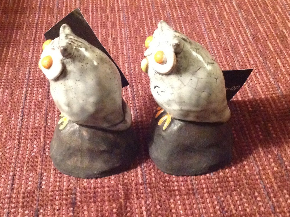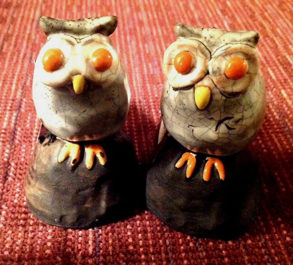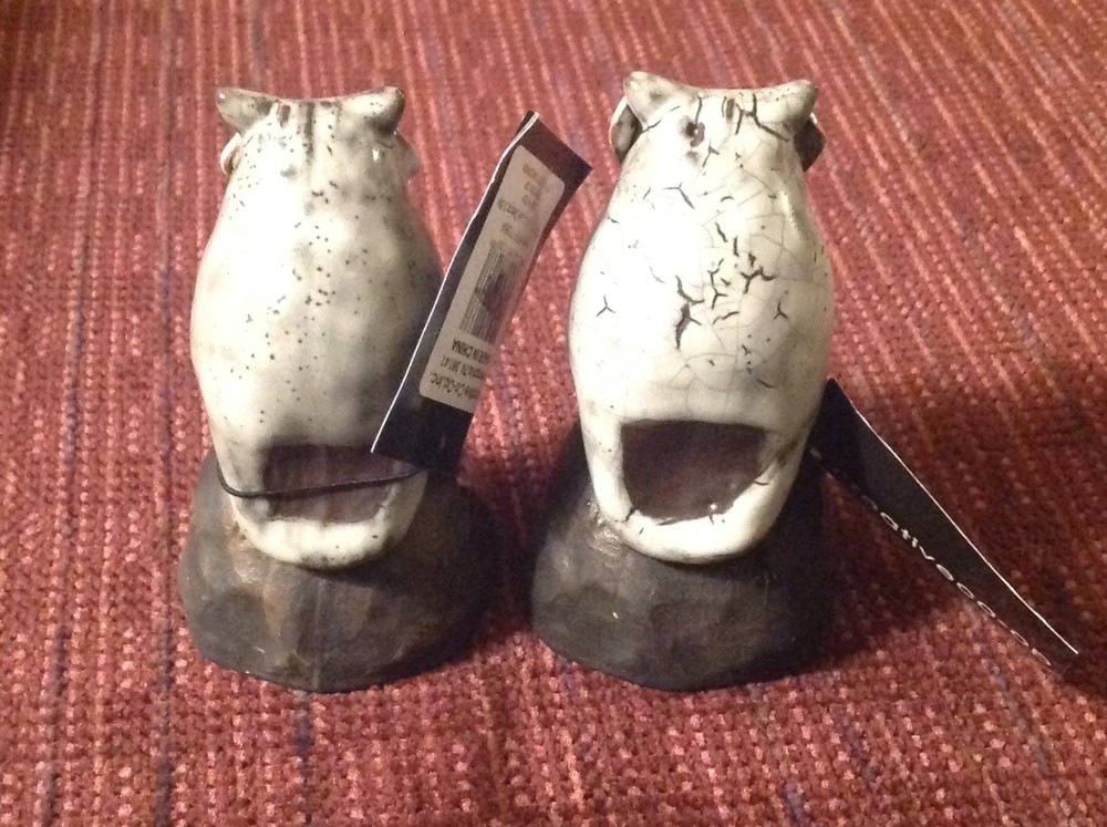 Creative Co-Op Pottery Owl Figurine Set of 2 Clay Orange Eyes 3.5" Tall New with tags By Creative Co-Op, Inc. Set of 2 gray pottery owl figurines Hand made, each owl is distinct and different 3-1/2" tall approximate eBay will calculate and add actual shipping costs. To insure safe delivery, we use sufficient amounts of proper packing material LIVE YOUR DREAM with a treasure from Dream Cottage Antiques Collectibles
