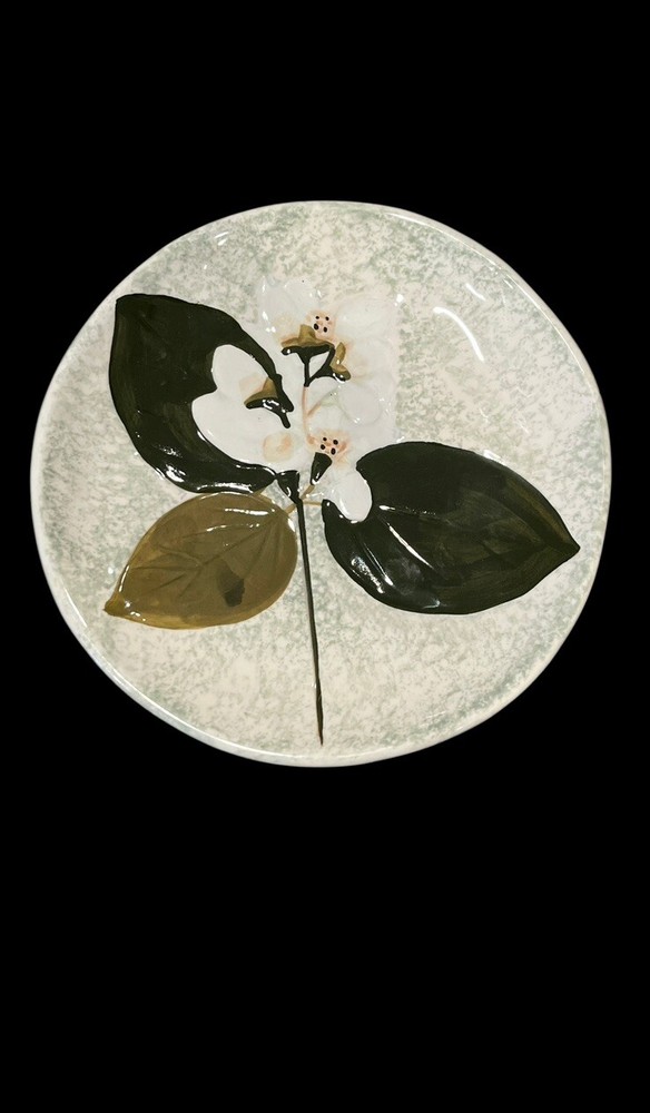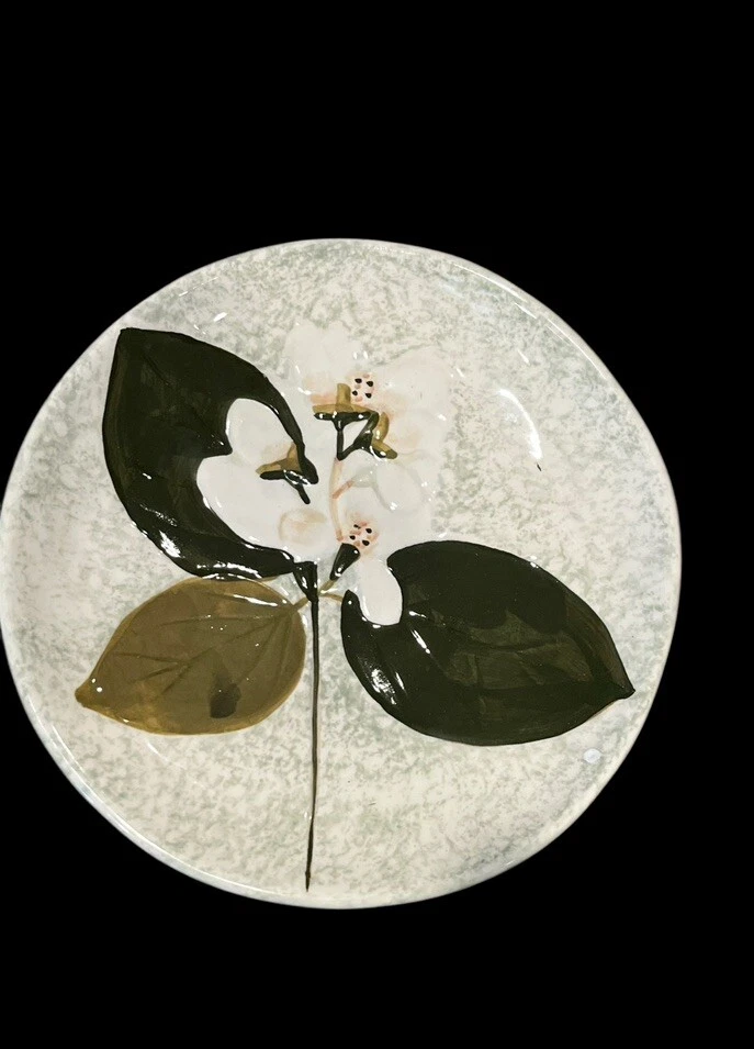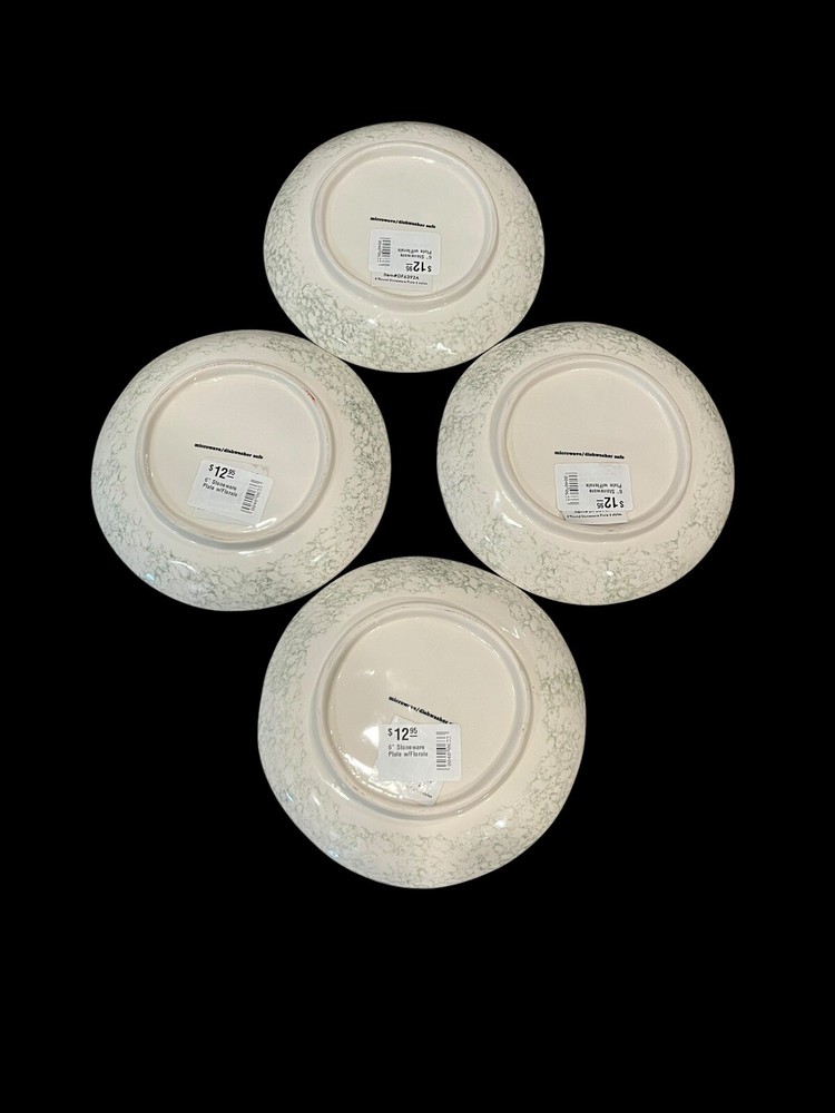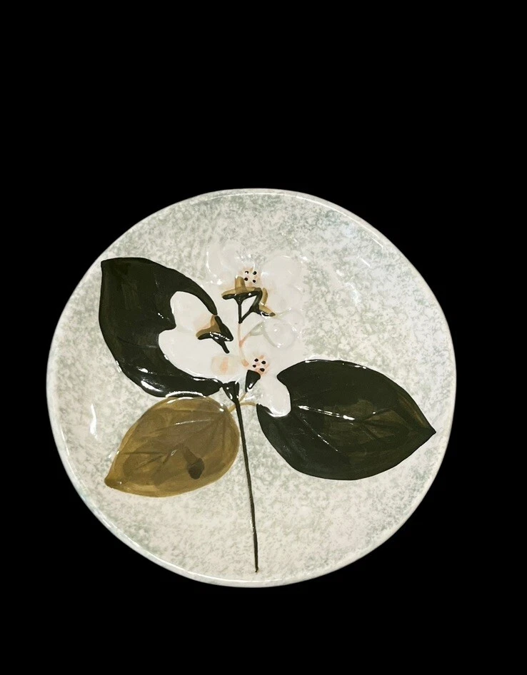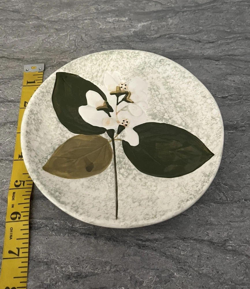 Creative Co-Op Raised Green Floral Small Bread Desert Appetizer Round Plates 6” Pre-Owned in Excellent Condition The plates have never been used Original Price Tags still attached Measurements shown in photos Ceramic Microwave & Dishwasher Safe Photos are part of the description Location: LR