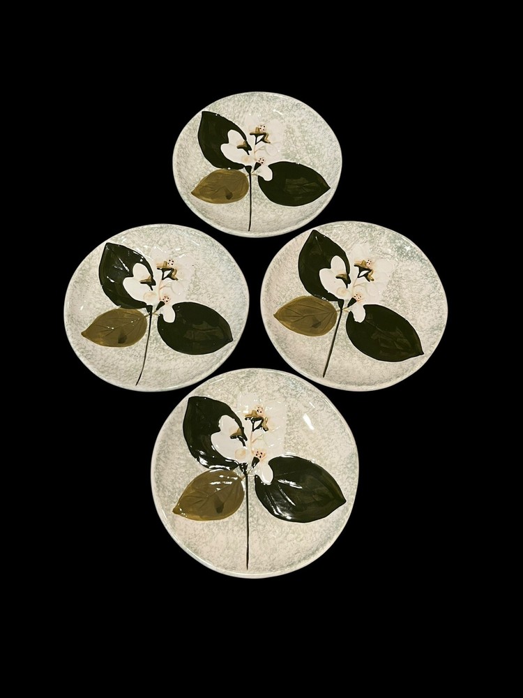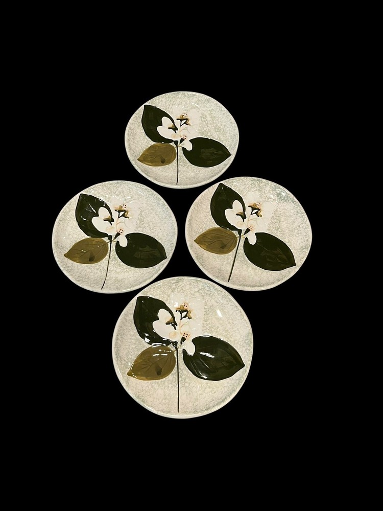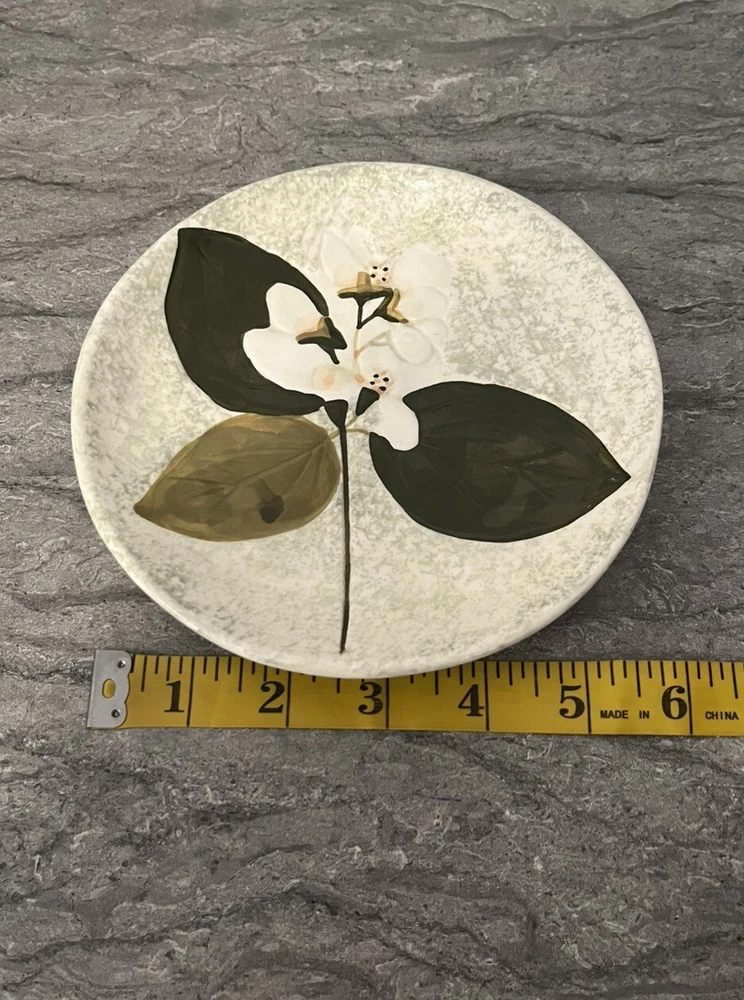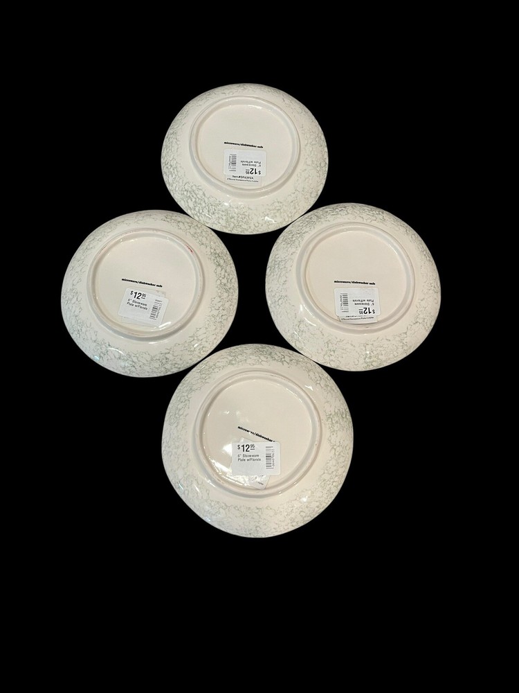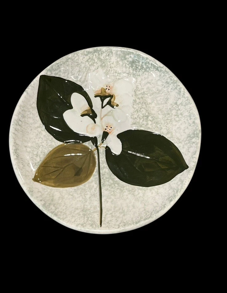 Creative Co-Op Raised Green Floral Small Bread Desert Appetizer Round Plates 6” Pre-Owned in Excellent Condition The plates have never been used Original Price Tags still attached Measurements shown in photos Ceramic Microwave & Dishwasher Safe Photos are part of the description Location: LR