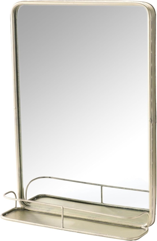 This is an OpenBoxed Item. Our Opened Box items are in great condition. Typically the item is 100% brand new in a replaced box. A great way to get a lot more for your money. All our items are 100% guaranteed! So buy worry free! Creative Co-Op Rectangle Wall 27.8"L x 19.5"W, Antiqued Nickle Product Details Brand: Creative Co-Op Room Type: Bathroom Shape: Rectangular Product Dimensions: 27.75"L x 19.5"W Frame Material: Metal Style: Single Vanity Mounting Type: Wall Mount Finish Type: Antique Nickel Surface Recommendation: Metal,Mirror,Wall Color: Antiqued Nickle Theme: Antique,Contemporary,Modern Number of Pieces: 1 Number of Items: 1 Material: Glass, Metal Frame Type: Framed Item Weight: 12 Pounds Assembly Required: No Frame Color: Antiqued Nickle Manufacturer: Creative Co-Op Size: 27.8"L x 19.5"W UPC: 191009010043 Global Trade Identification Number: 00191009010043 Item Weight: 12 pounds Item model number: DA7762 Is Discontinued By Manufacturer: No Fabric Type: Nullify Finish types: Antique Nickel Perfume: Unscented Batteries required: No Nullify A sleek and contemporary wall mirror that features a metal frame with an attached shelf in an antique nickel finish Ideal for adding some functionality and style to any living space, such as a bathroom, bedroom, or entryway Comes with hanging mechanisms for easy installation, can be hung vertically Made of metal, glass, and reclaimed wood Measures 19.5 inches wide and 27.5 inches high Metal construction Add functionality and style to the home with this antique nickel framed wall mirror with a shelf. This sleek and contemporary wall mirror features a metal frame with an attached shelf in an antique nickel finish. The metal frame adds some contrast and elegance to the wall, while the rectangular shape reflects some light and opens up the space. The attached shelf adds convenience and storage space for essentials, such as toiletries, cosmetics, or accessories. This wall mirror is ideal for adding functionality and style to any living space, such as a bathroom, bedroom, or entryway. Hang it on its own or as part of a gallery wall. This wall mirror comes with hanging mechanisms for easy installation. It can be hung vertically. This wall mirror is made of metal, glass, and reclaimed wood, making it sturdy and durable. It measures 19.5 inches long and 27.5 inches high, making it a perfect size for any space. This mirror is a stunning piece that will add a touch of sophistication to any home.