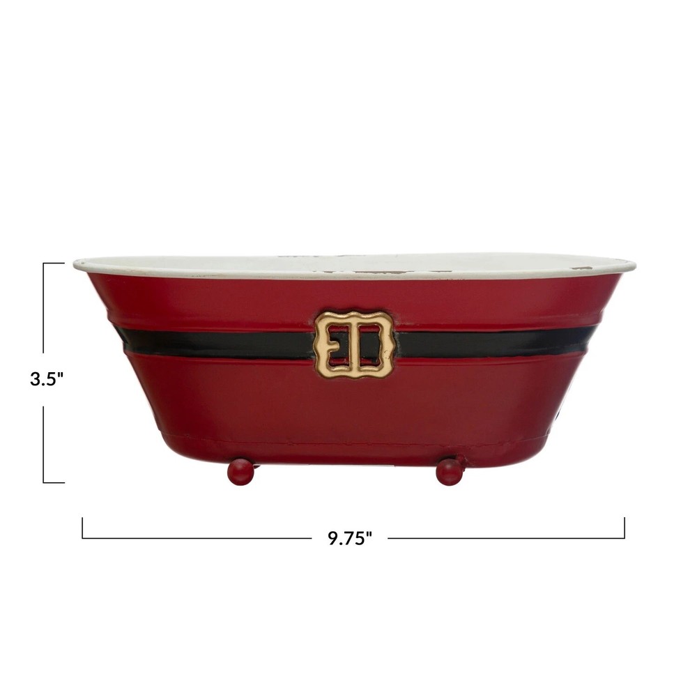 Creative Co-Op Red Santa Bathtub Soap Dish or Decor Use Approximate size: 9 3/4" L x 3 1/2" H ...see picture Made of Metal...Red with Black Santa Belt around front with Gold buckle Use for soap, loofah, pumice, small bottles of toiletry items, flowers and more Brand new Please look carefully at all pictures and ask any questions before buying as there are NO RETURNS Shipping Discount : When purchasing ANY items in my store, PLEASE do the following: Put each item you want to purchase in your cart by clicking "Add to Cart". When you are finished adding all the items you wish to purchase, click on the Cart at the top of the page. Then click on "Go to Checkout" and the shipping discount will be automatically applied. You are only charged full price shipping on one item in your cart (the one with the highest shipping cost if different kinds of items are purchased) If you have any problems, please let me know. For this particular item, Shipping cost for first one is $7.95. Any additional items in this listing will have a shipping cost of $3.00 when purchased and paid for in the same order at the same time . This is automatically calculated at check out.